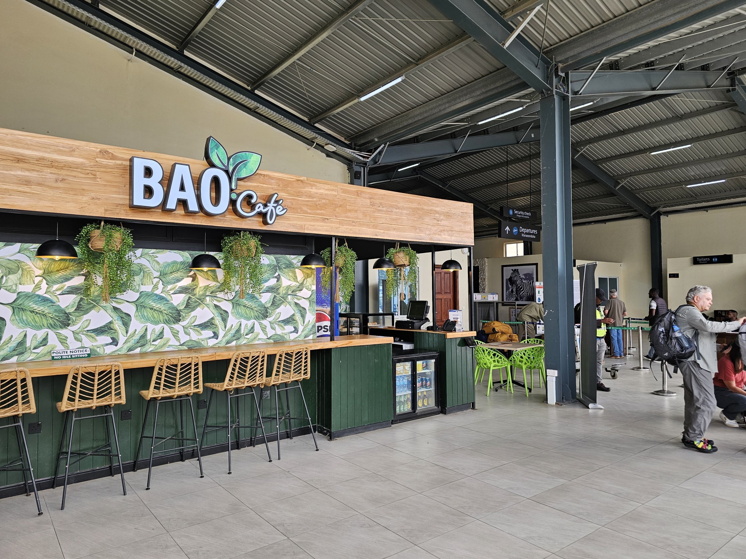 Ένα φτηνό καφέ με μικρά σνακ βρίσκεται σε ένα μικρό περίπτερο απέναντι από τον τερματικό σταθμό αναχωρήσεων.