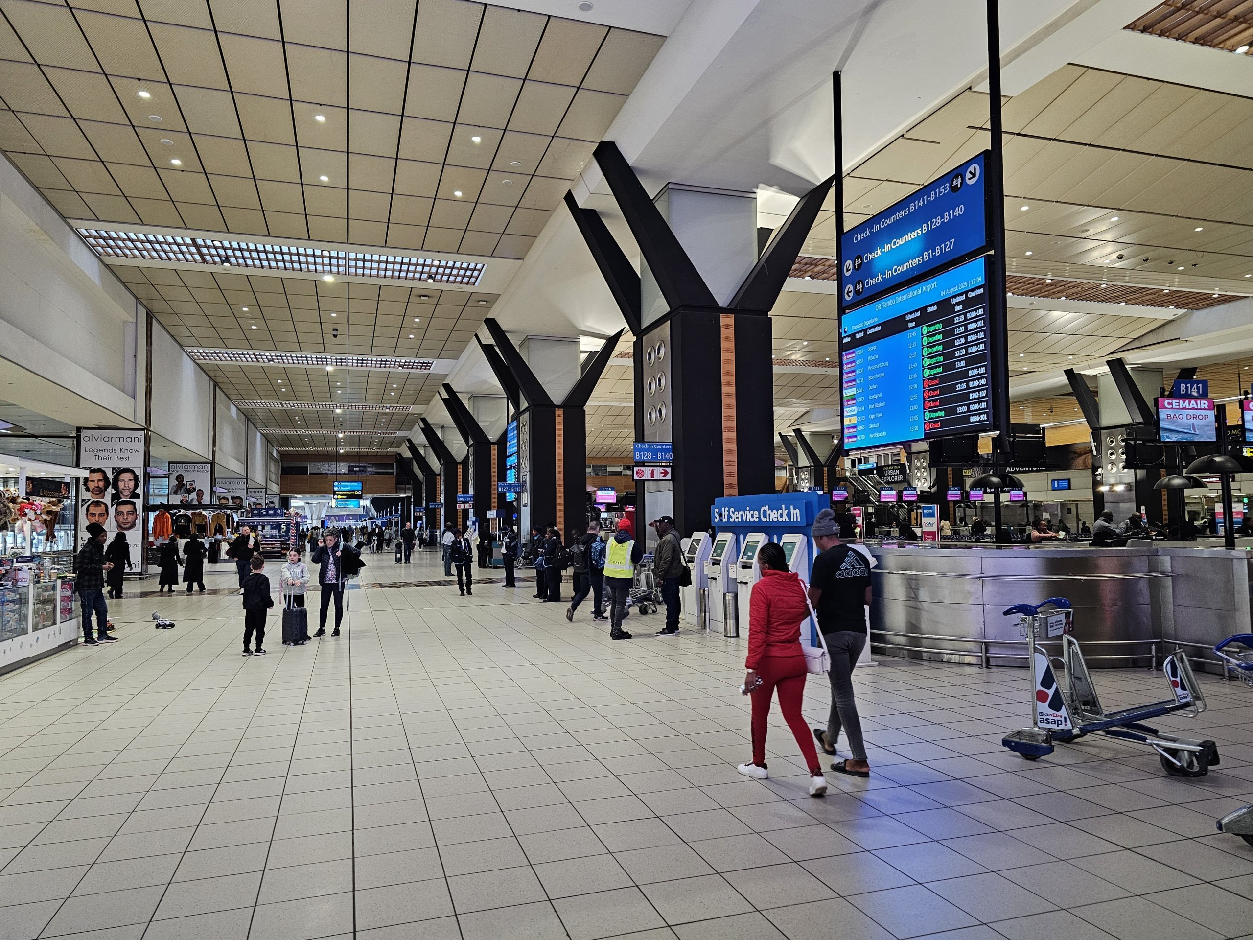 Στο Γιοχάνεσμπουργκ, οι επιβάτες εσωτερικού έχουν επίσης το δικό τους διάδρομο άφιξης, οπότε πρέπει να βγουν στο δημόσιο χώρο και να περάσουν ξανά από τον έλεγχο ασφαλείας.