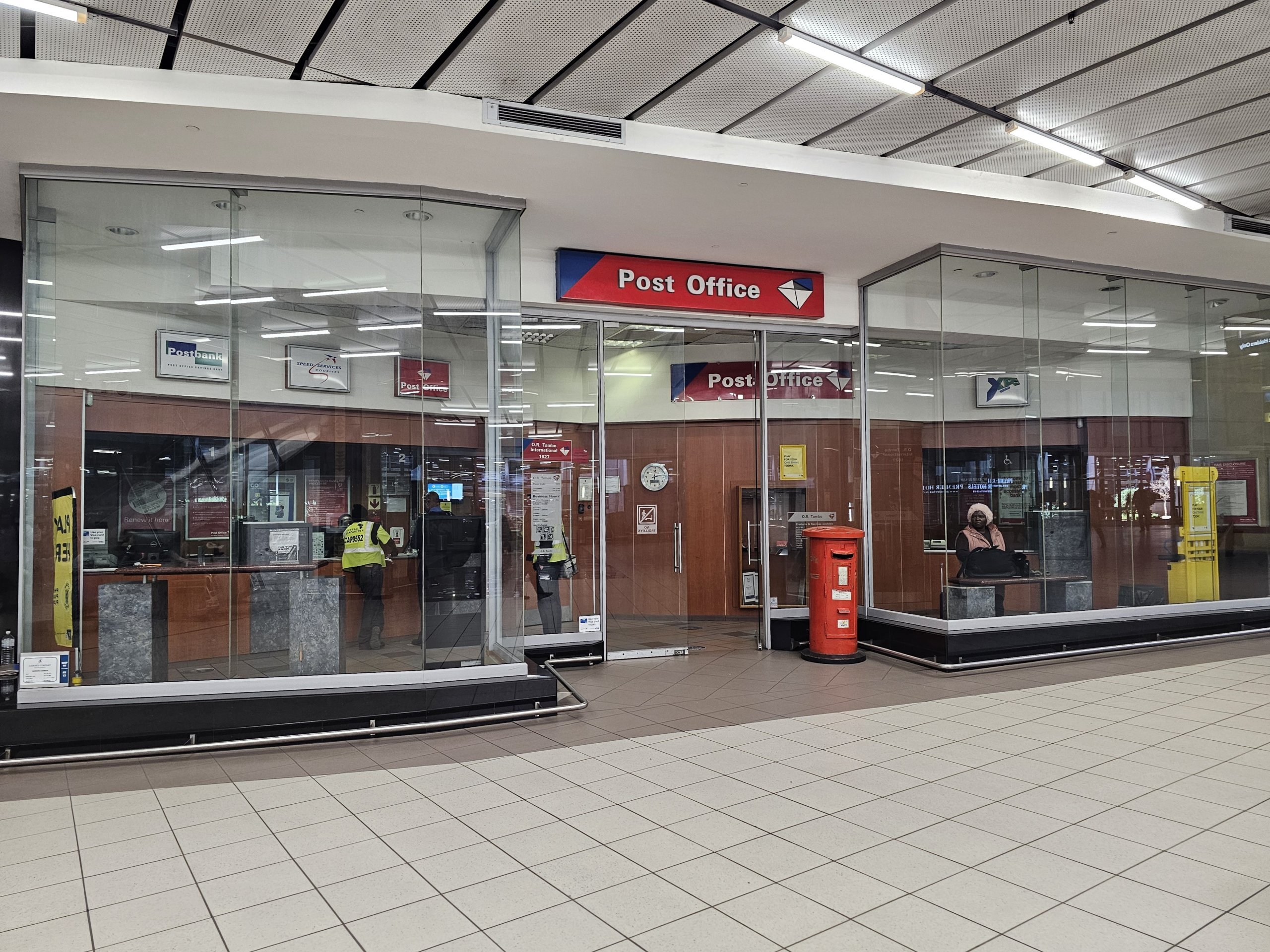 Υπάρχει ταχυδρομείο της Νότιας Αφρικής στο ισόγειο του κεντρικού αεροσταθμού κοντά στην αίθουσα αφίξεων, το οποίο είναι ανοιχτό καθημερινά, συμπεριλαμβανομένων των Σαββατοκύριακων, 8 π.μ. - 7 μ.μ..