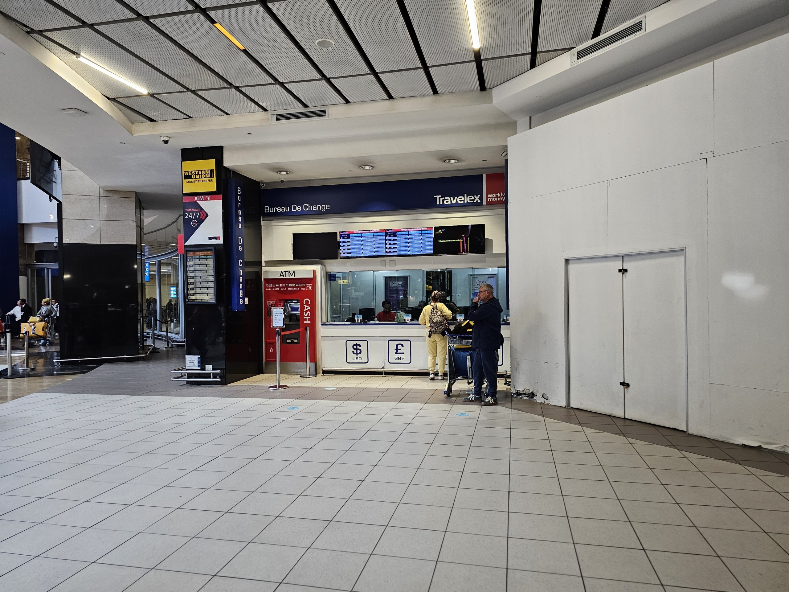 Σε όλο το αεροδρόμιο θα βρείτε πολλά ΑΤΜ από τοπικές τράπεζες, όπως η Nedbank, η ABSA, η Netbank και η Standard Bank, από τα οποία μπορείτε επίσης να κάνετε ανάληψη με ξένες κάρτες.
