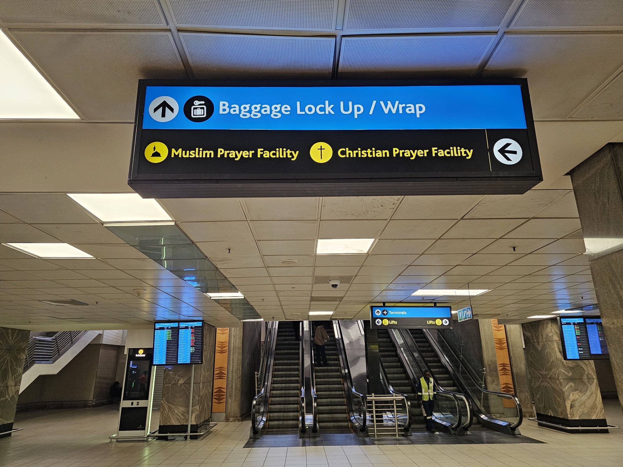 Η σήμανση πιο κάτω αναφέρει ότι ο χώρος αποσκευών βρίσκεται ευθεία μπροστά προς το χώρο στάθμευσης, αλλά αυτή η σήμανση είναι λανθασμένη και θα βρείτε τον χώρο αποσκευών αμέσως αριστερά.