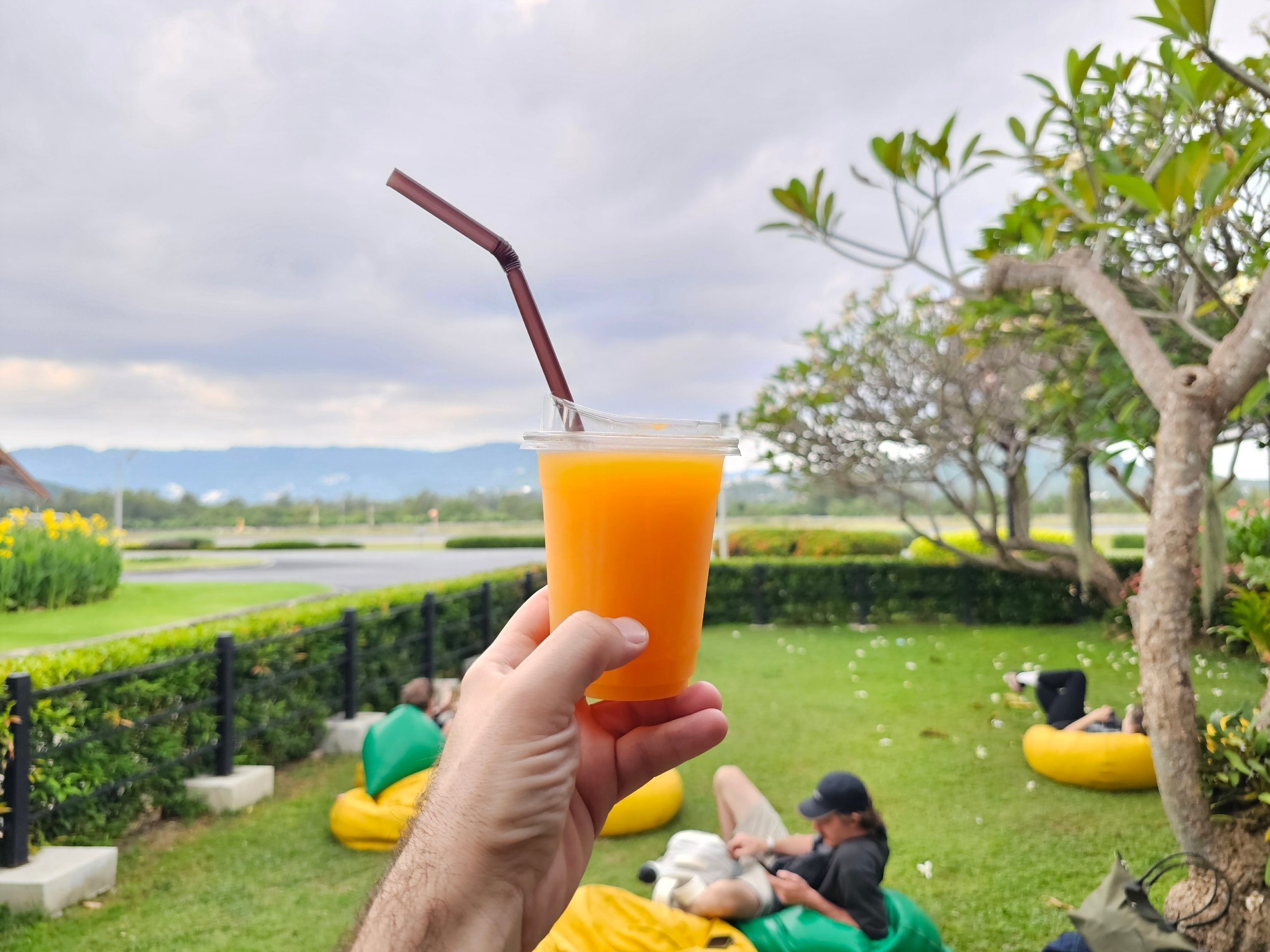 Άνετα μαξιλάρια για να κάθεστε είναι διάσπαρτα στις χορταριασμένες περιοχές, αλλά μπορείτε να ξαπλώσετε ελεύθερα ακριβώς στο γρασίδι.