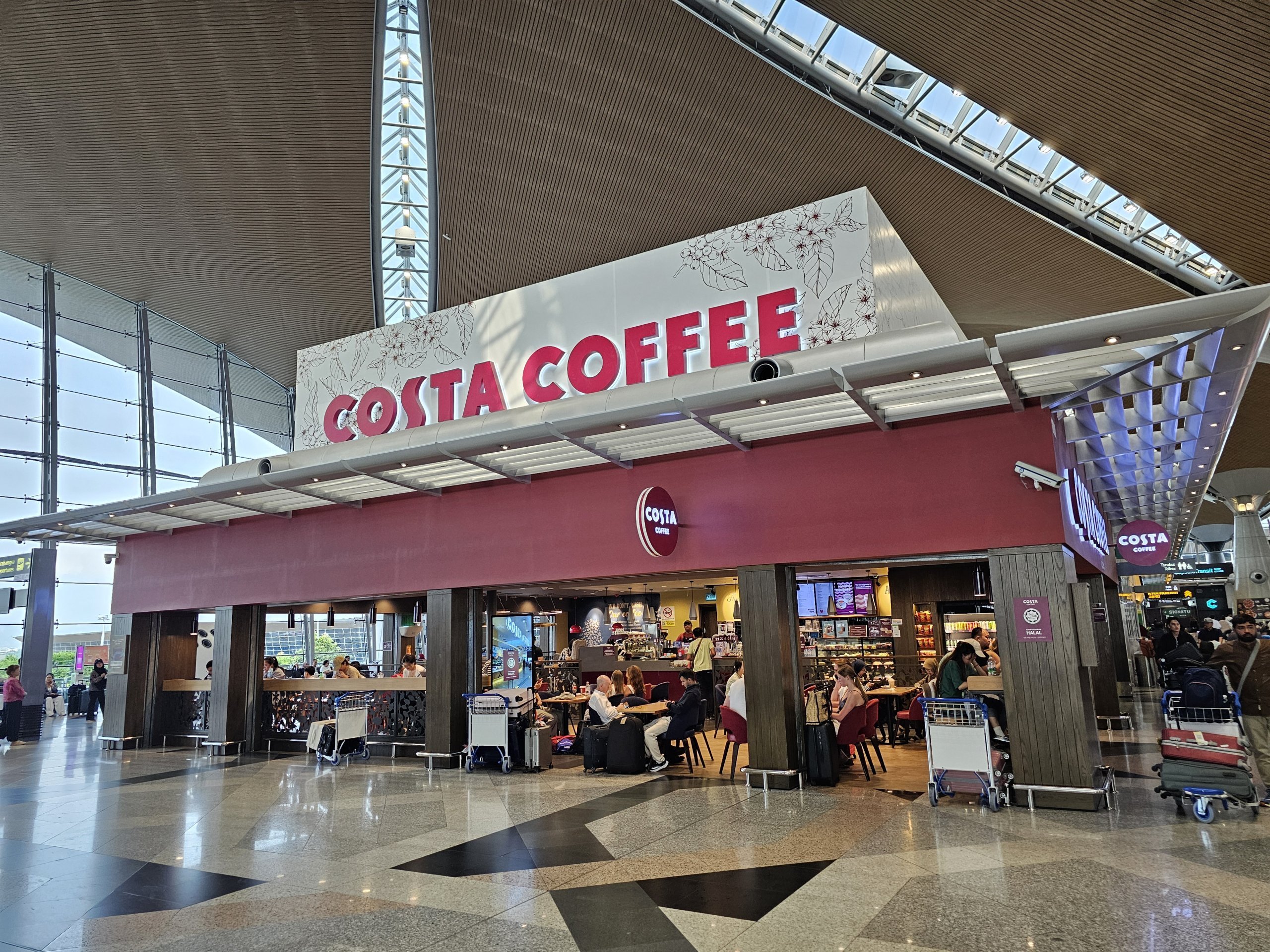 Γνωστές αλυσίδες όπως τα KFC, McDonald's, Costa Coffee, Starbucks, Subway και Burger King μπορείτε να βρείτε στο αεροδρόμιο. Υπάρχουν μεγάλες αυλές εστίασης με πολλά εστιατόρια που σερβίρουν τοπική κουζίνα, καθώς και πολυτελή μπαρ.