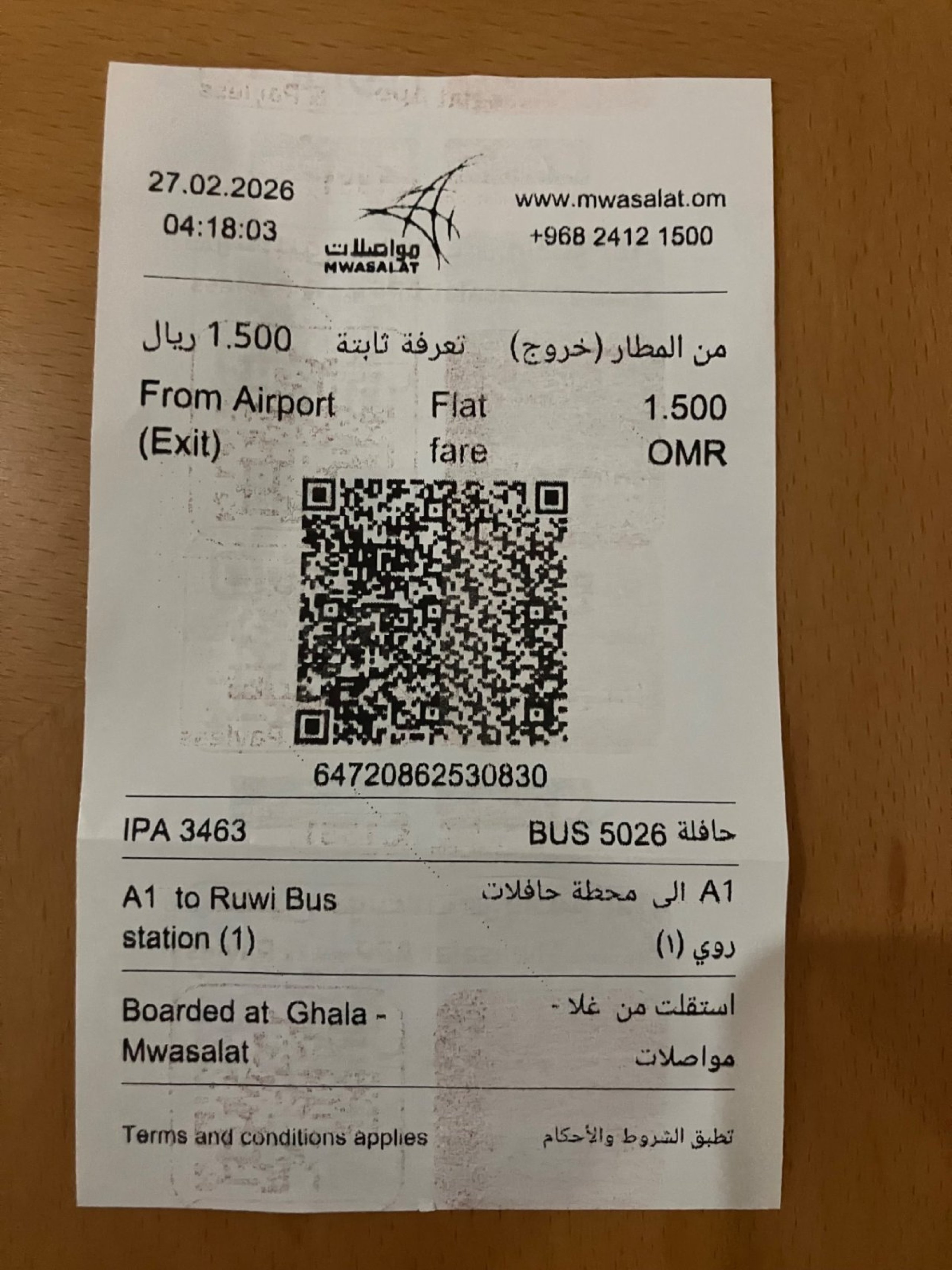Το εισιτήριο του λεωφορείου Α1 από το αεροδρόμιο κοστίζει 1,5 OMR, σημερινή εμπειρία
