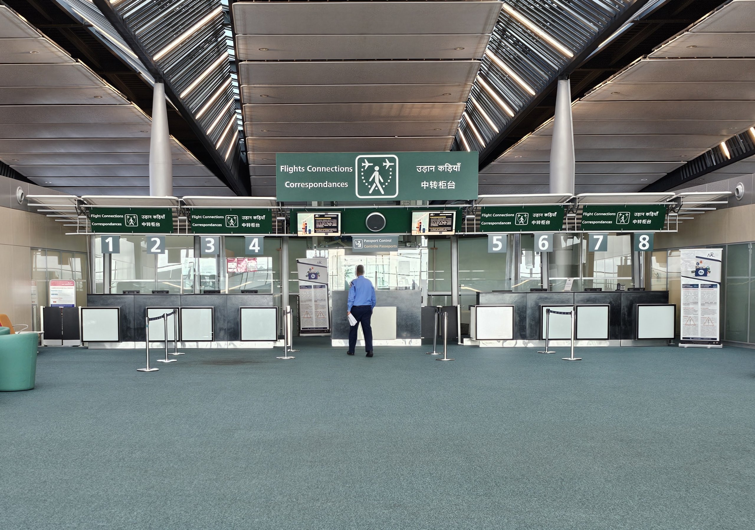 Ωστόσο, ο έλεγχος διαβατηρίων για τους επιβάτες μετεπιβίβασης είναι ξεχωριστός από τον κανονικό έλεγχο διαβατηρίων και θα περάσετε κατευθείαν στην περιοχή της πύλης αναχώρησης.