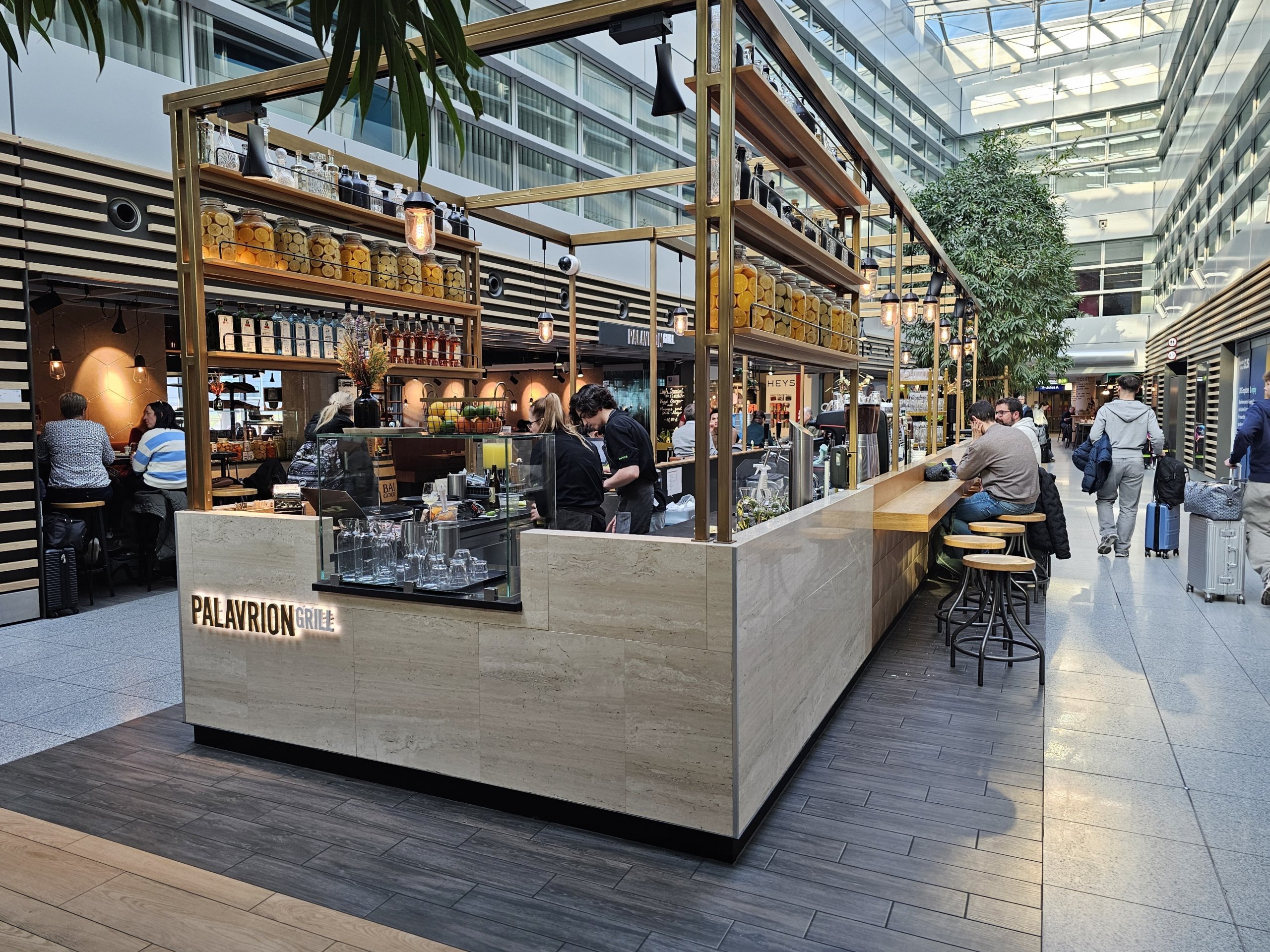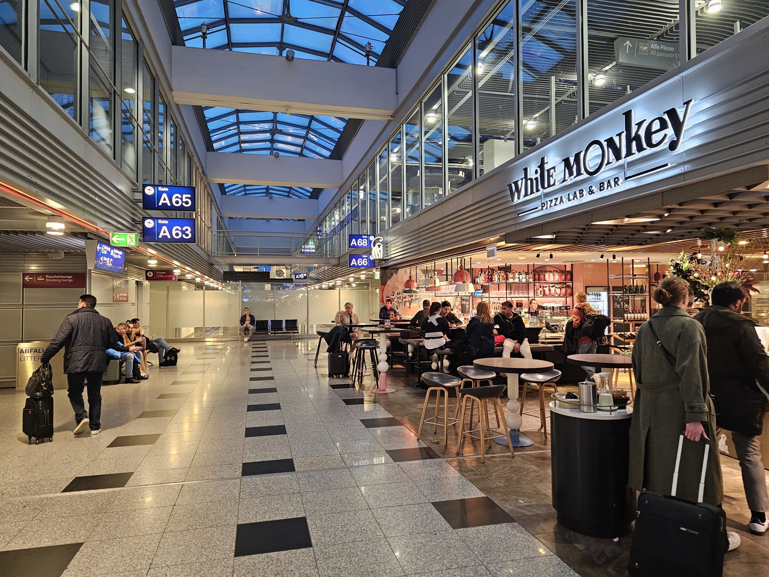 Το αεροδρόμιο του Ντίσελντορφ προσφέρει πολλές επιλογές για φαγητό, τόσο μετά τον έλεγχο ασφαλείας όσο και στο δημόσιο χώρο.