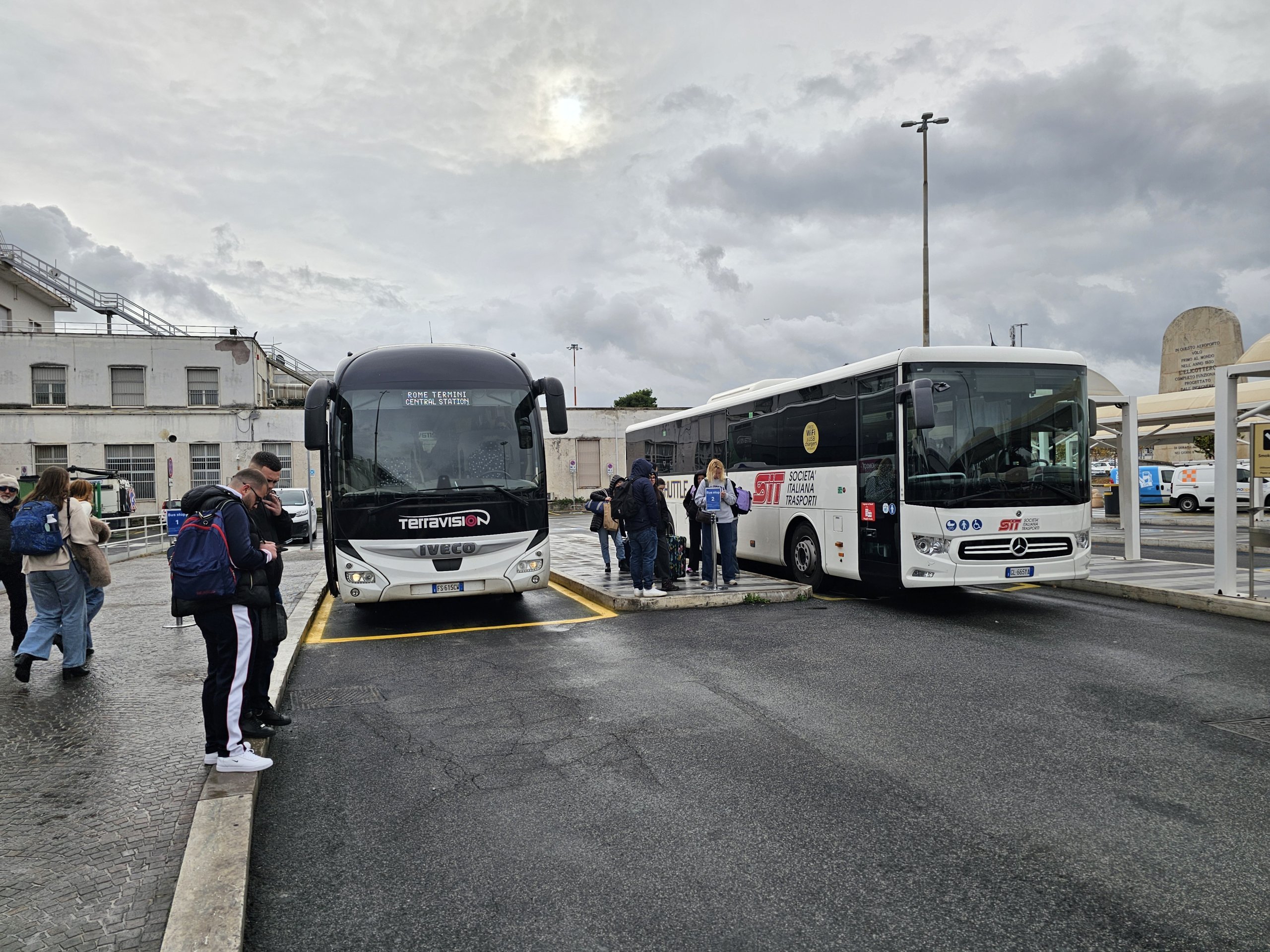 Στο σταθμό Termini, όλες οι εταιρείες σταματούν στη Via Giovanni Giolitti (ίδιες στάσεις με αυτές προς το αεροδρόμιο Fiumicino, οπότε βεβαιωθείτε ότι έχετε επιβιβαστεί στο σωστό λεωφορείο).