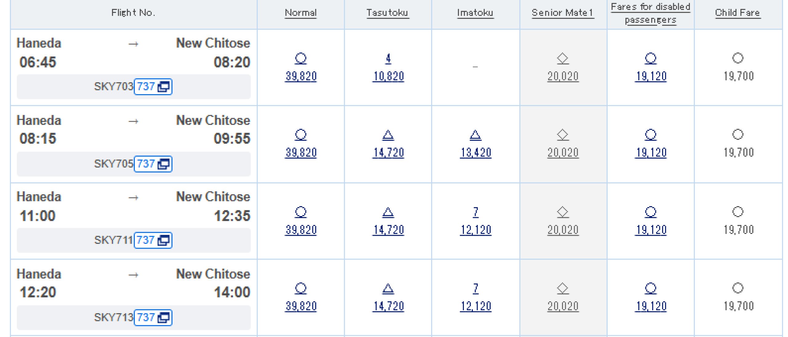 Οι πτήσεις πωλούνται συνήθως στον επίσημο ιστότοπο skymark.co.jp.