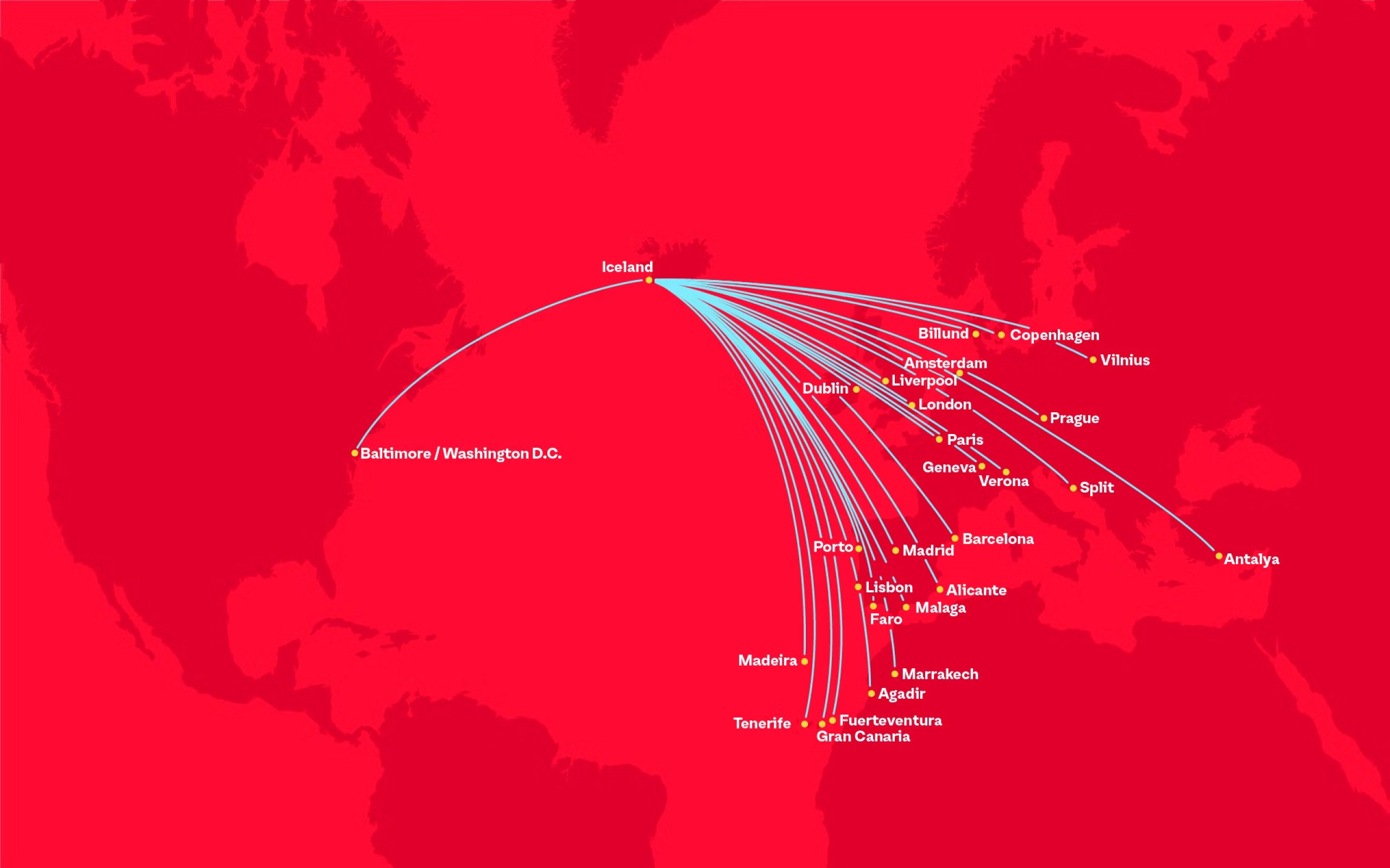 Οι πτήσεις προς τη Βόρεια Αμερική σταδιακά καταργήθηκαν, εστιάζοντας στη μεταφορά των Ισλανδών σε παραθαλάσσιους προορισμούς διακοπών, αλλά και σε δρομολόγια με την αντίθετη προοπτική - φέρνοντας τουρίστες στην Ισλανδία. Για παράδειγμα, τα δρομολόγια από την Πράγα PRG, τη Βαρσοβία WAW, το Λονδίνο STN, το Βίλνιους VNO ή το Παρίσι CDG ήταν δημοφιλή.
