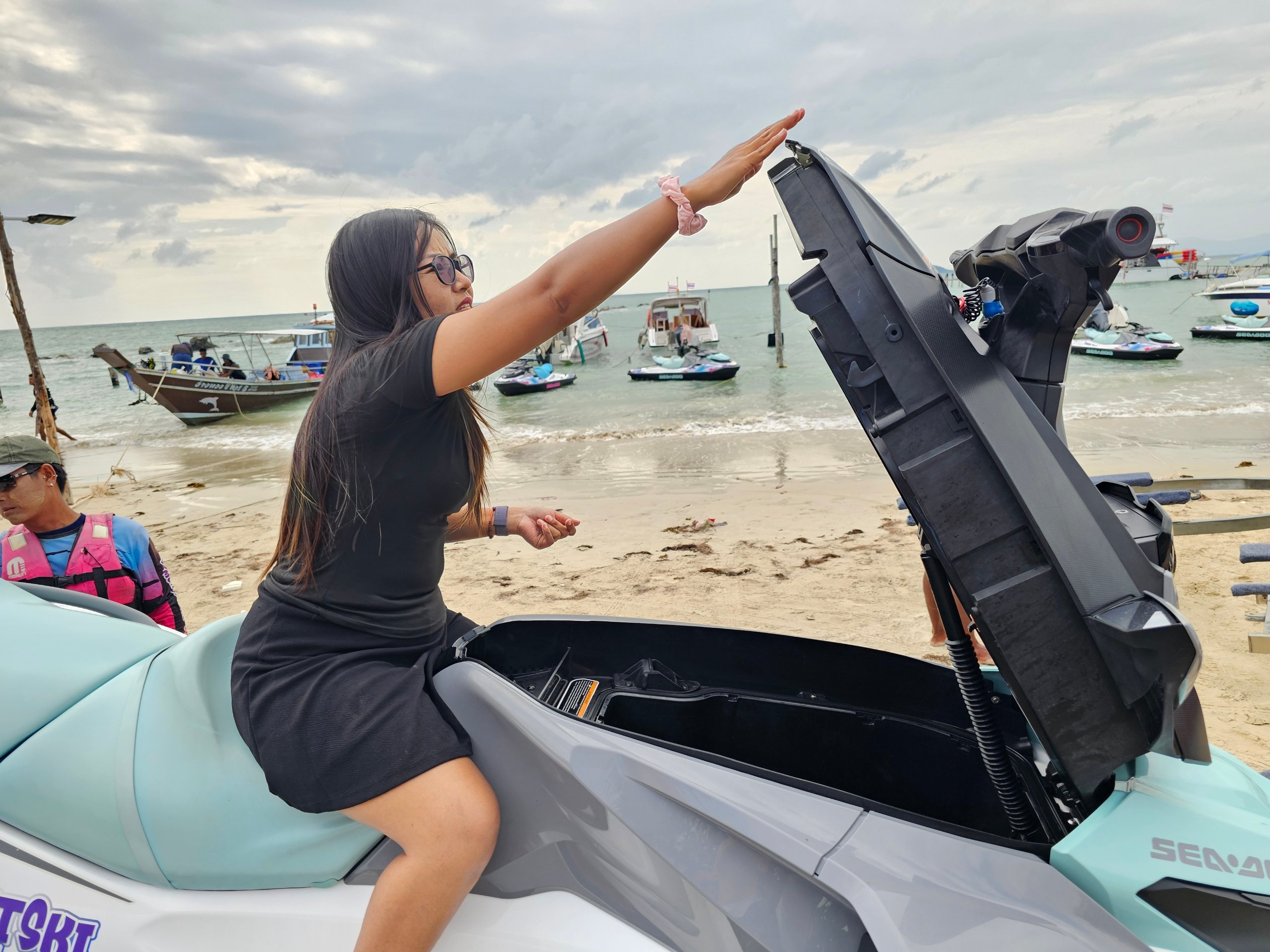 Πήγαμε δύο σε ένα τζετ σκι ως μέρος ενός οργανωμένου ταξιδιού. Η μεταφορά από το ξενοδοχείο (μείναμε στο W Koh Samui) περιλαμβανόταν, η οργάνωση ήταν επαγγελματική. Αλλά η ίδια η βόλτα; Ήταν αρκετά πιο άγρια από ό,τι περιμέναμε.