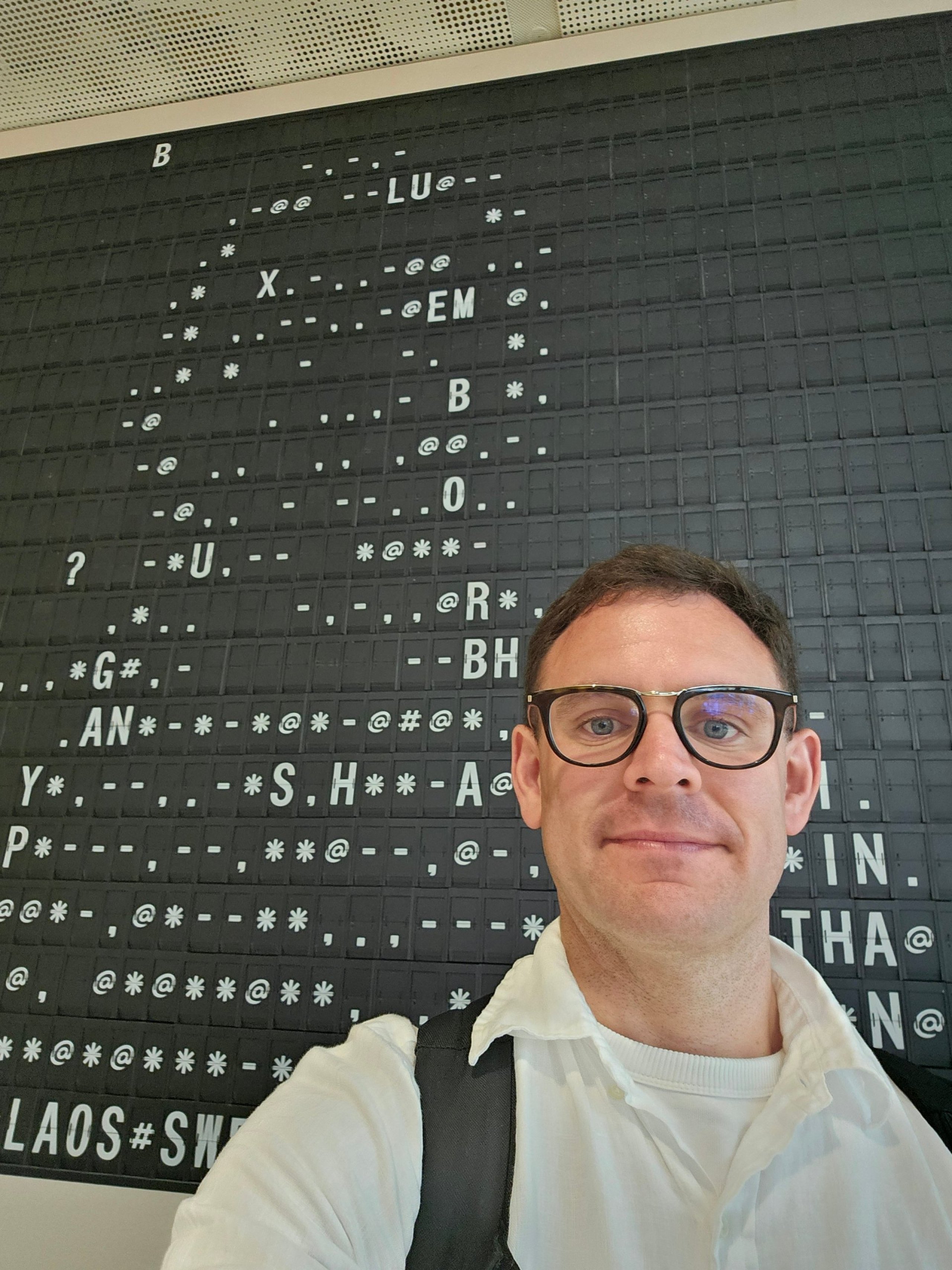 Στέκεστε μπροστά σε έναν παλιό πίνακα αναχωρήσεων και χρησιμοποιεί σαγιονάρες για να δημιουργήσει το περίγραμμά σας.