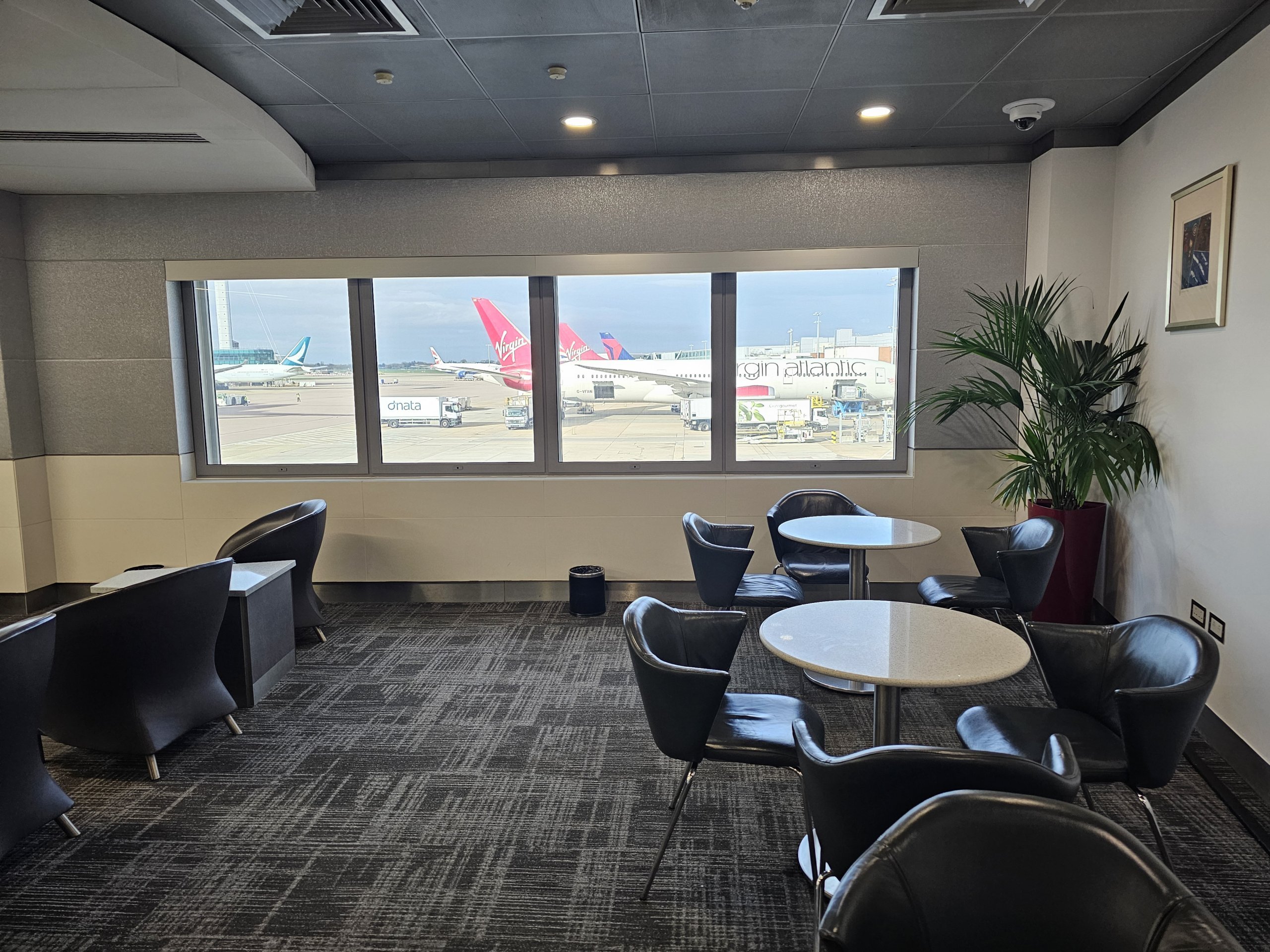Ένα μεγάλο πλεονέκτημα είναι η υπέροχη θέα στον διάδρομο πίστας του αεροδρομίου - ακριβώς μπροστά από το σαλόνι υπάρχουν κερκίδες μεγάλων αεροσκαφών μεγάλων αποστάσεων, ενώ από εδώ μπορείτε επίσης να δείτε τον εμβληματικό πύργο του αεροδρομίου Heahtrow.