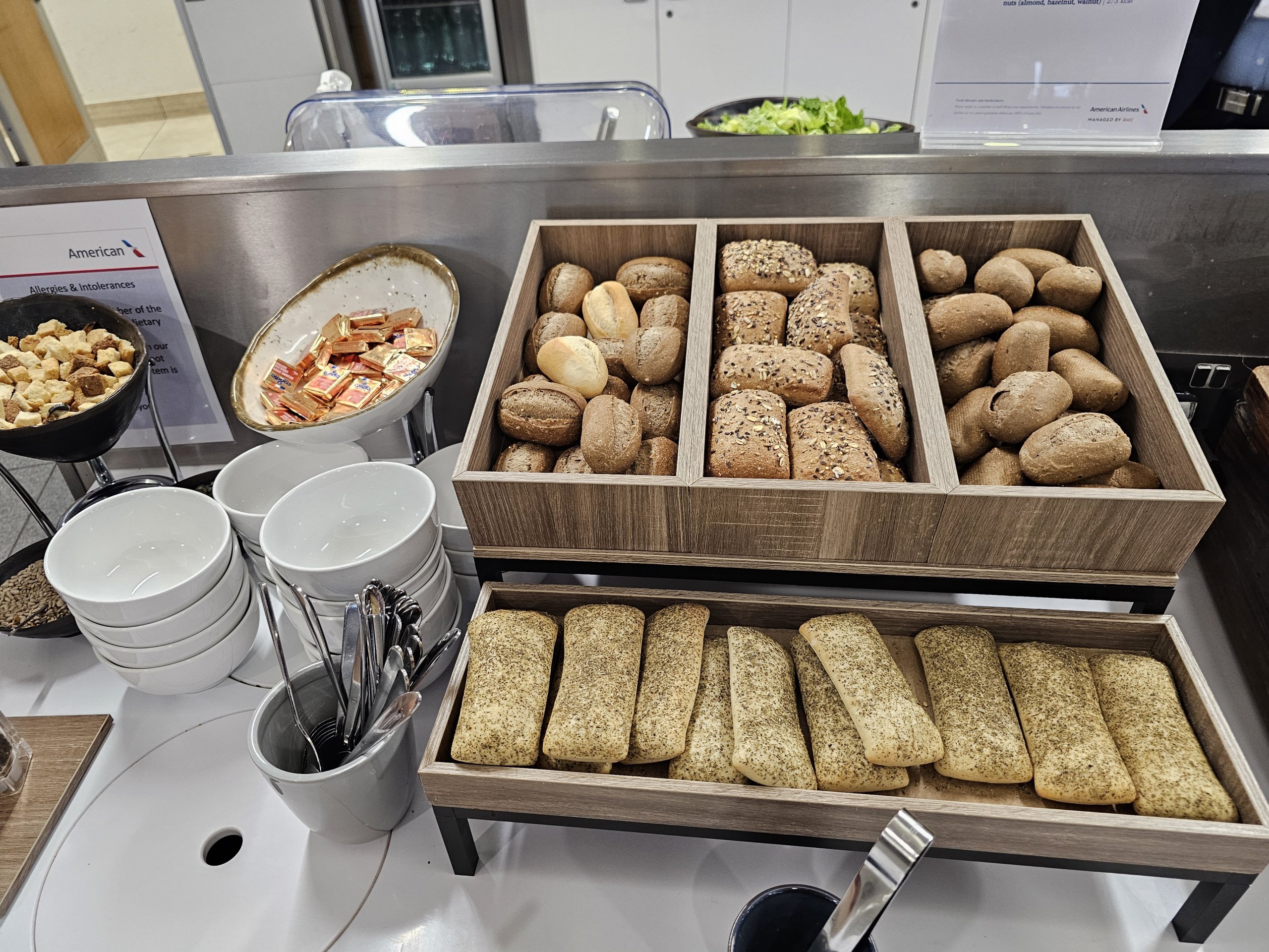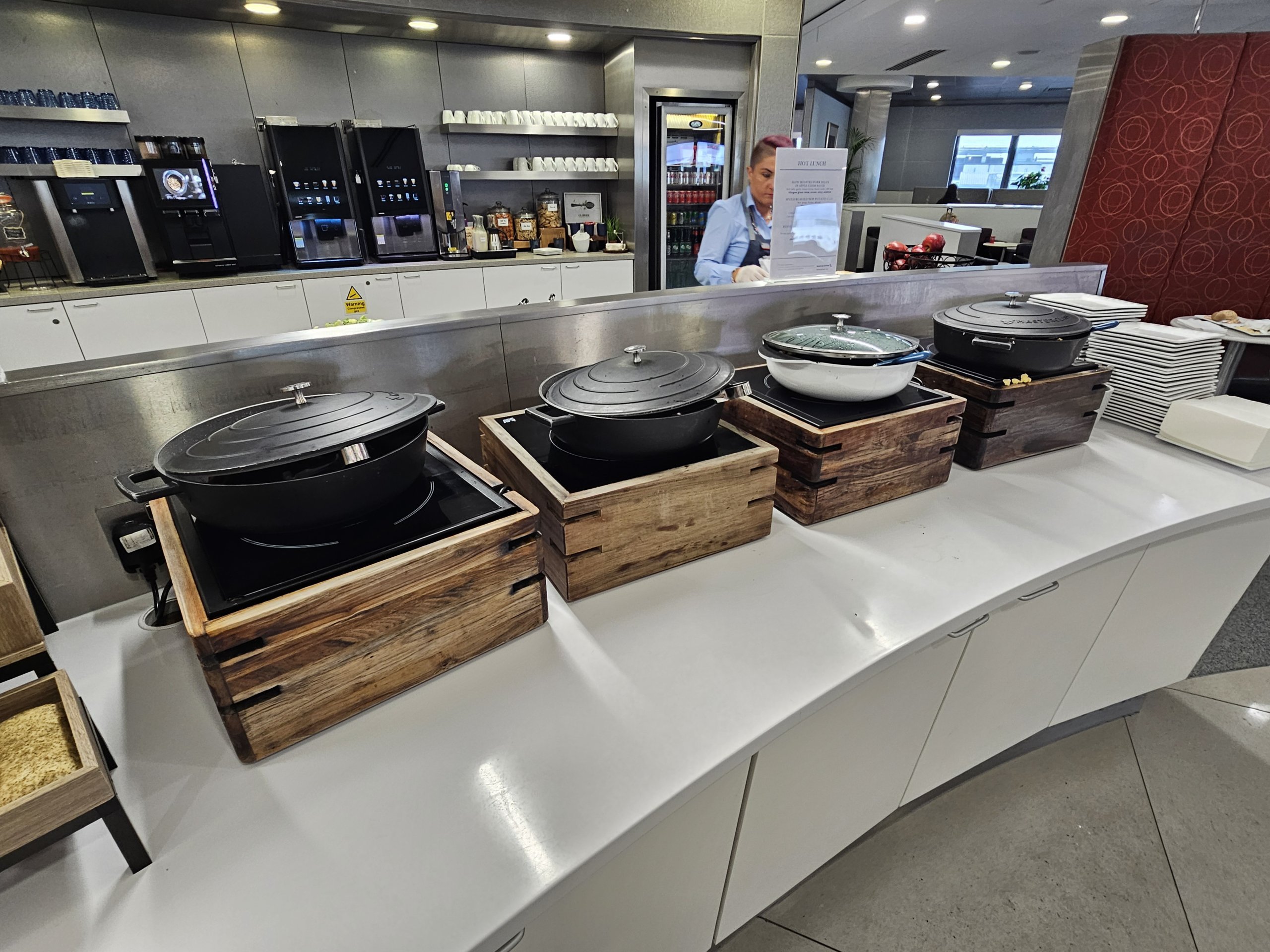 Το ζεστό φαγητό διαθέτει μενού πρωινού (μέχρι περίπου τις 11:30 π.μ.) και μενού μεσημεριανού γεύματος (μέχρι το κλείσιμο του lounge). Η σούπα είναι διαθέσιμη καθ' όλη τη διάρκεια της ημέρας.