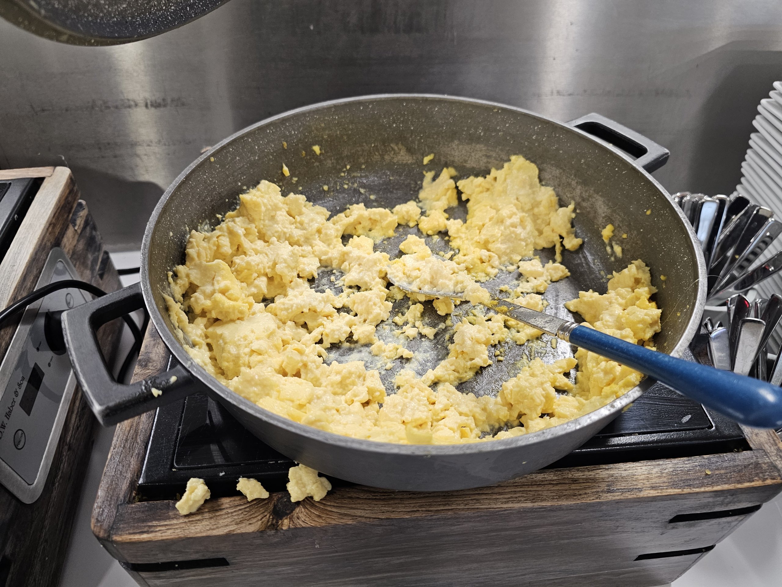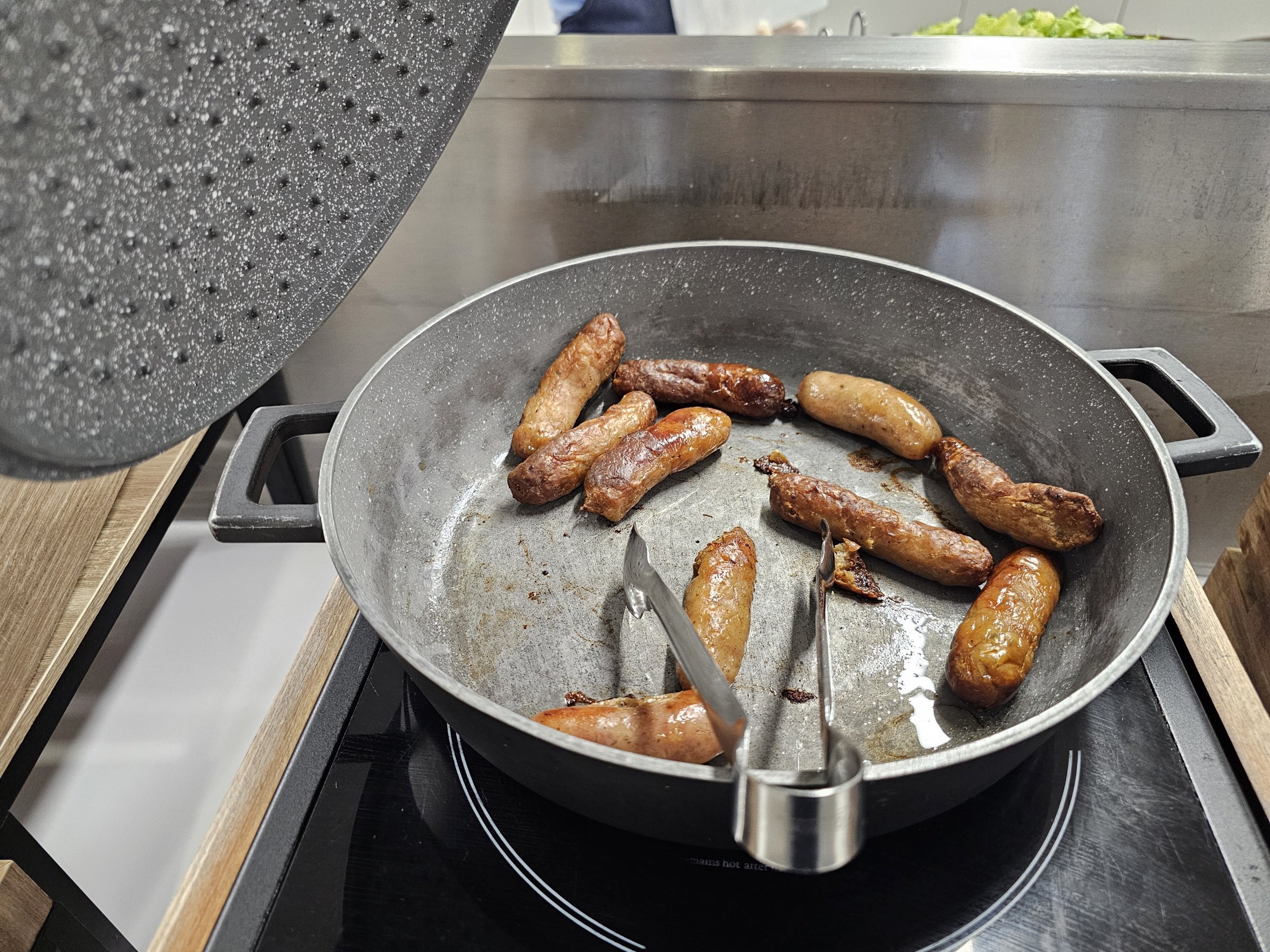 Στο πρωινό, υπάρχει το κλασικό τρίο από ομελέτα, μπέικον και λουκάνικα. Επιπλέον, υπάρχουν συνήθως φασόλια ή ντομάτες.