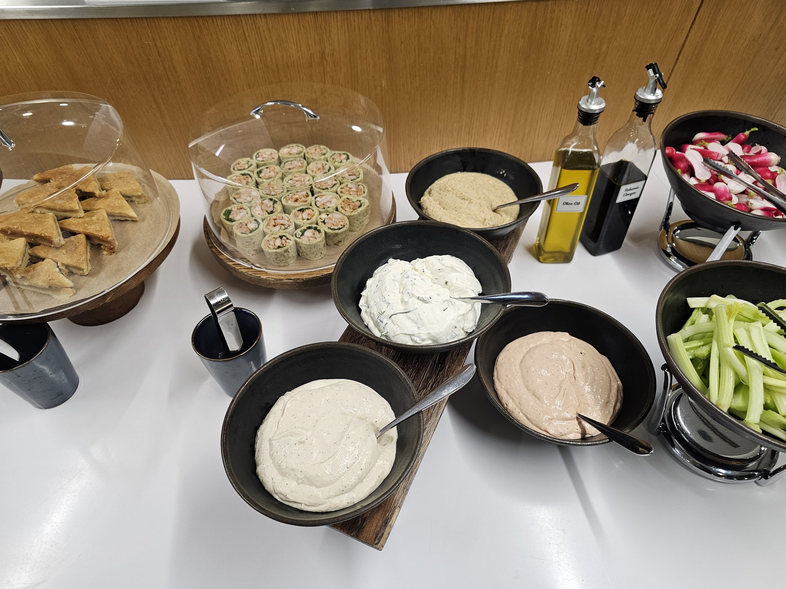 Υπάρχουν επίσης μερικά μπολ με λαχανικά, κάτι που εκτιμώ. Δίπλα του μπορείτε να διαλέξετε ανάμεσα σε 3 είδη επάλειψης και αρτοσκευάσματα. Από την άλλη πλευρά, υπάρχει σχεδόν παντελής έλλειψη φρούτων.