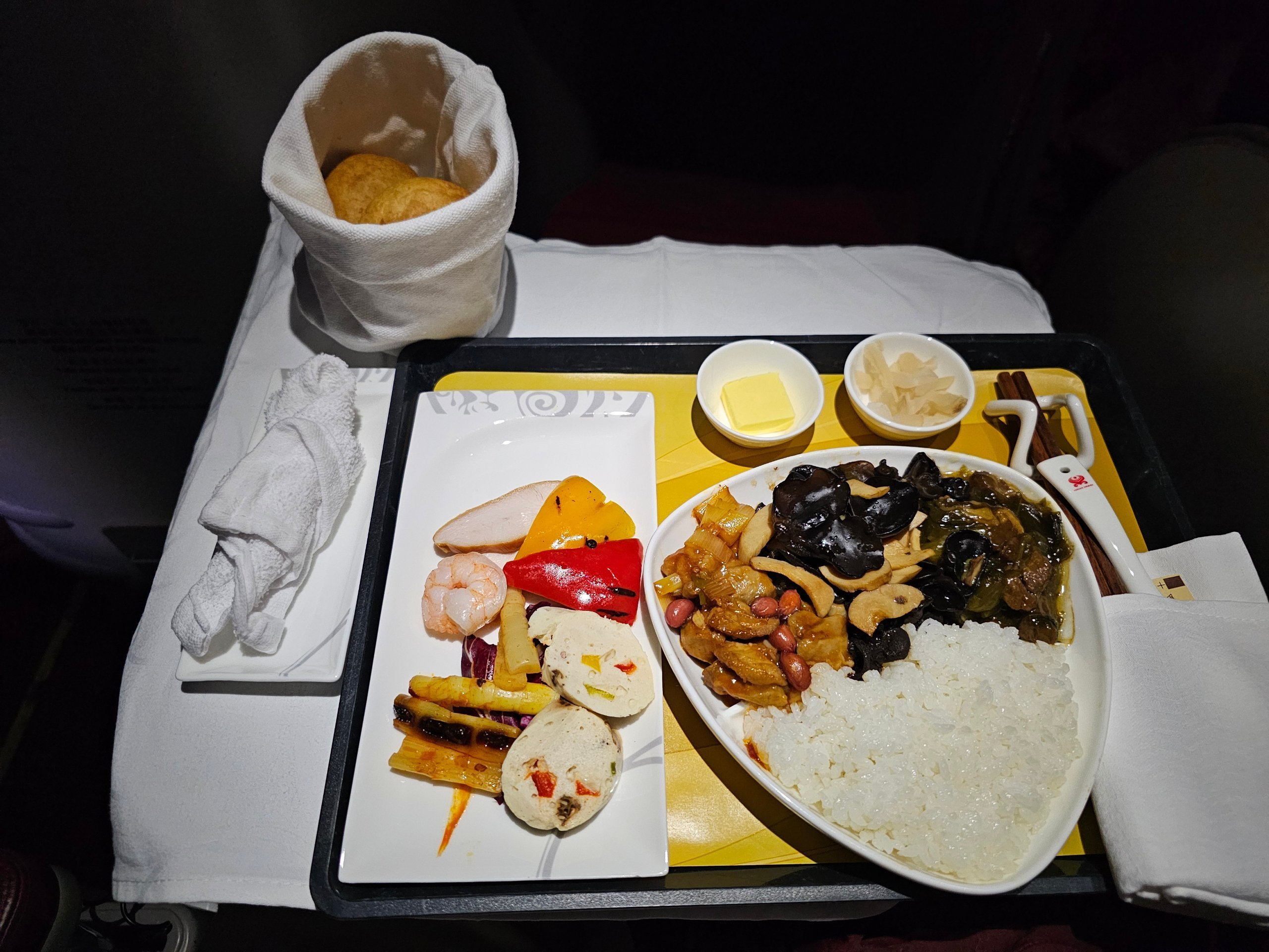 Μετά την απογείωση, ακολουθεί το κύριο γεύμα, το οποίο είναι παρόμοιο σε γεύση με αυτό που ζήσαμε στο προηγούμενο τμήμα - περισσότερο κινεζικό στυλ, λιγότερο διακριτική παρουσίαση.