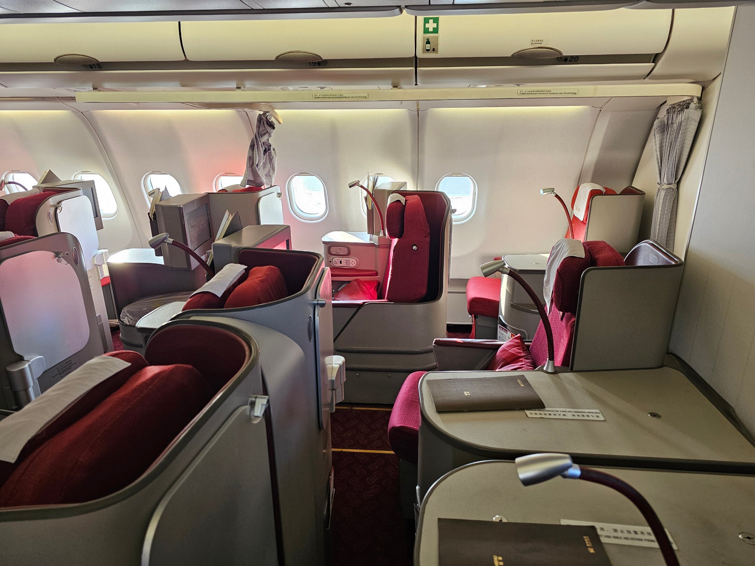 Αυτή η διαμόρφωση της business class είναι χειρότερη από την προηγούμενη πτήση, αλλά εξακολουθεί να είναι σημαντικά καλύτερη από το Airbus A330-200 ή το Boeing 737.