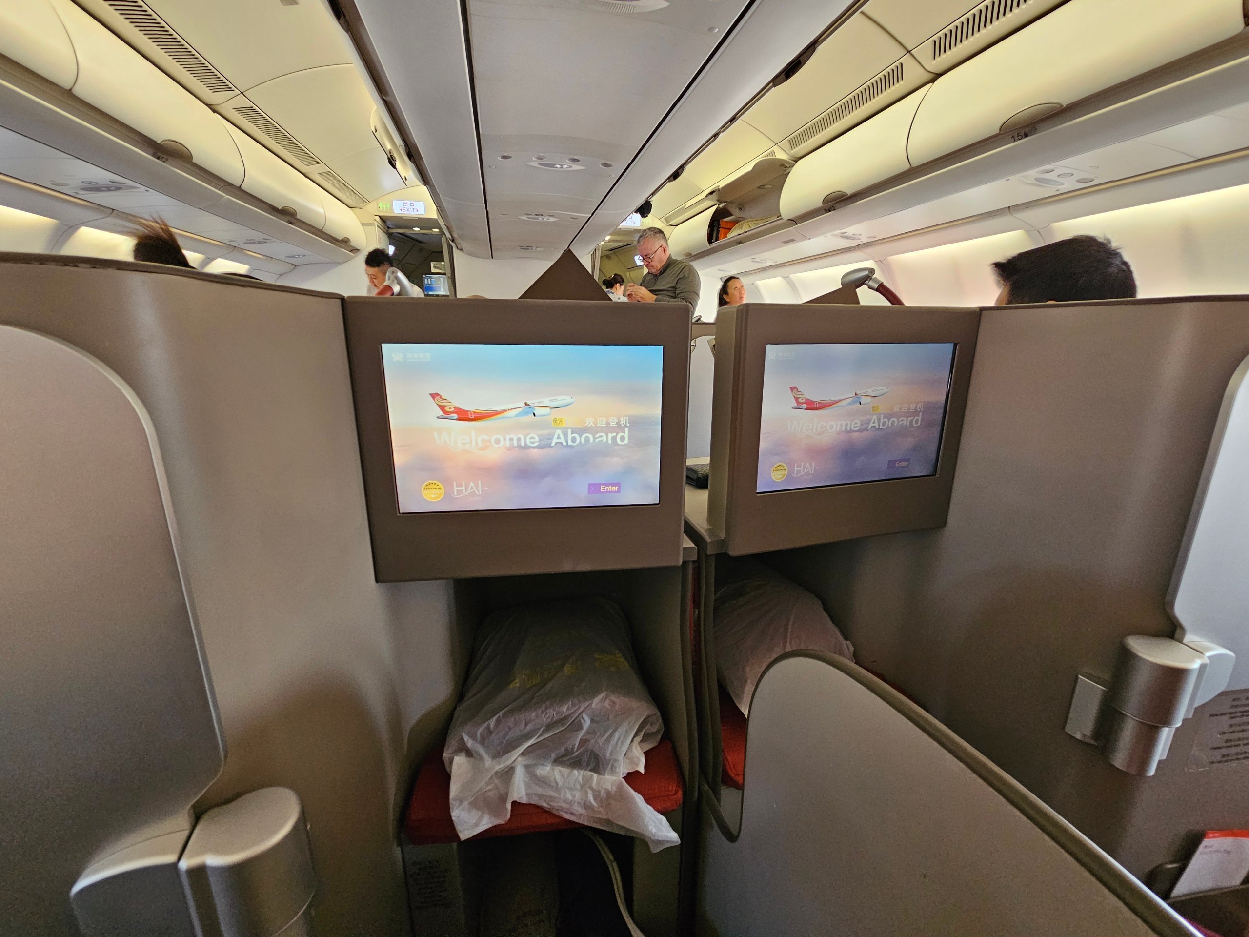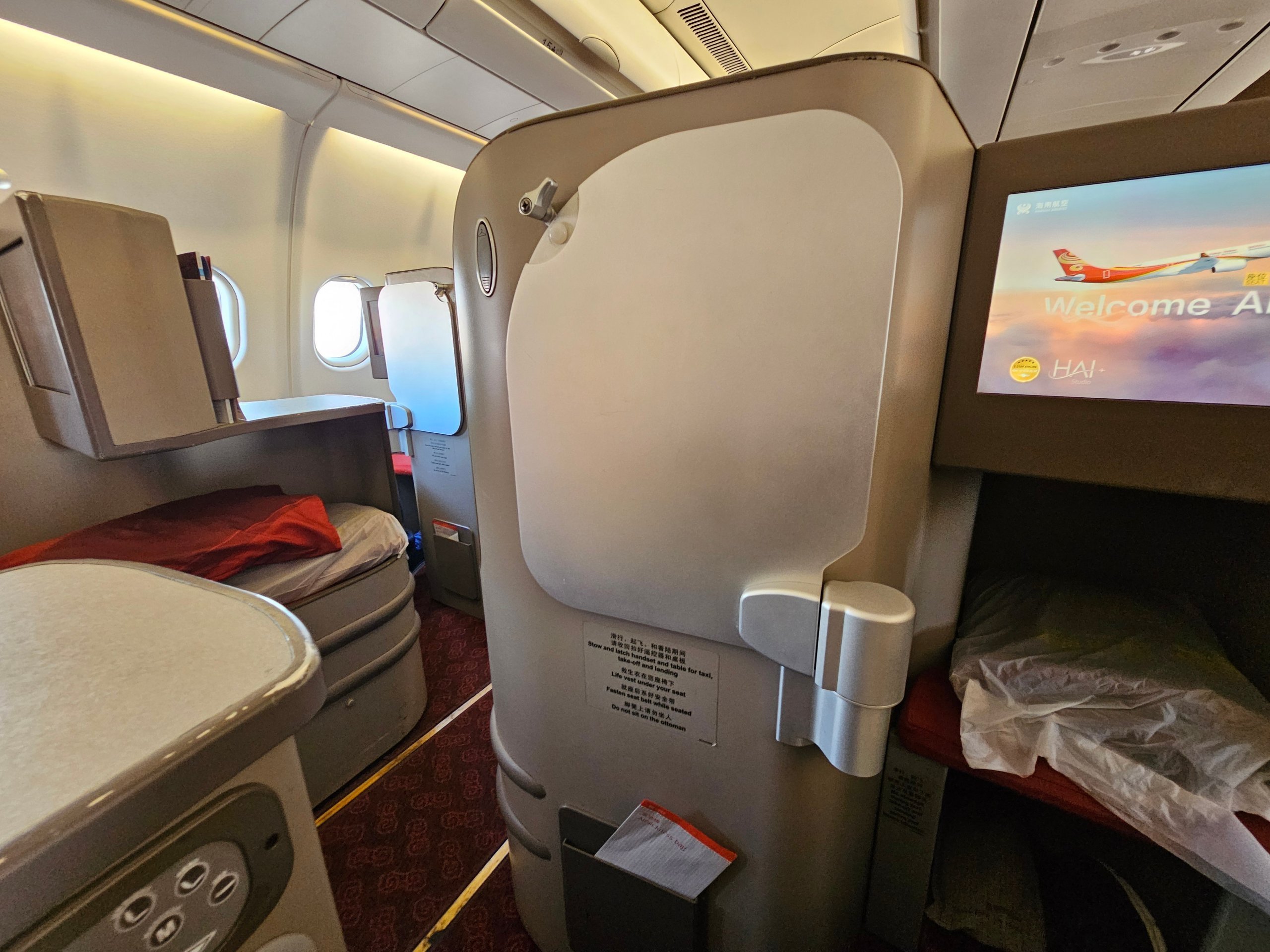 Το Airbus A330-300 της Hainan Airlines στη διαμόρφωση Stelia Solstys προσφέρει ένα πλήρως επίπεδο κρεβάτι και σταθερή άνεση. Σε σύγκριση με το πρώτο τμήμα από την Πράγα, ωστόσο, η ιδιωτικότητα είναι ασθενέστερη και η συνολική αίσθηση λιγότερο premium.