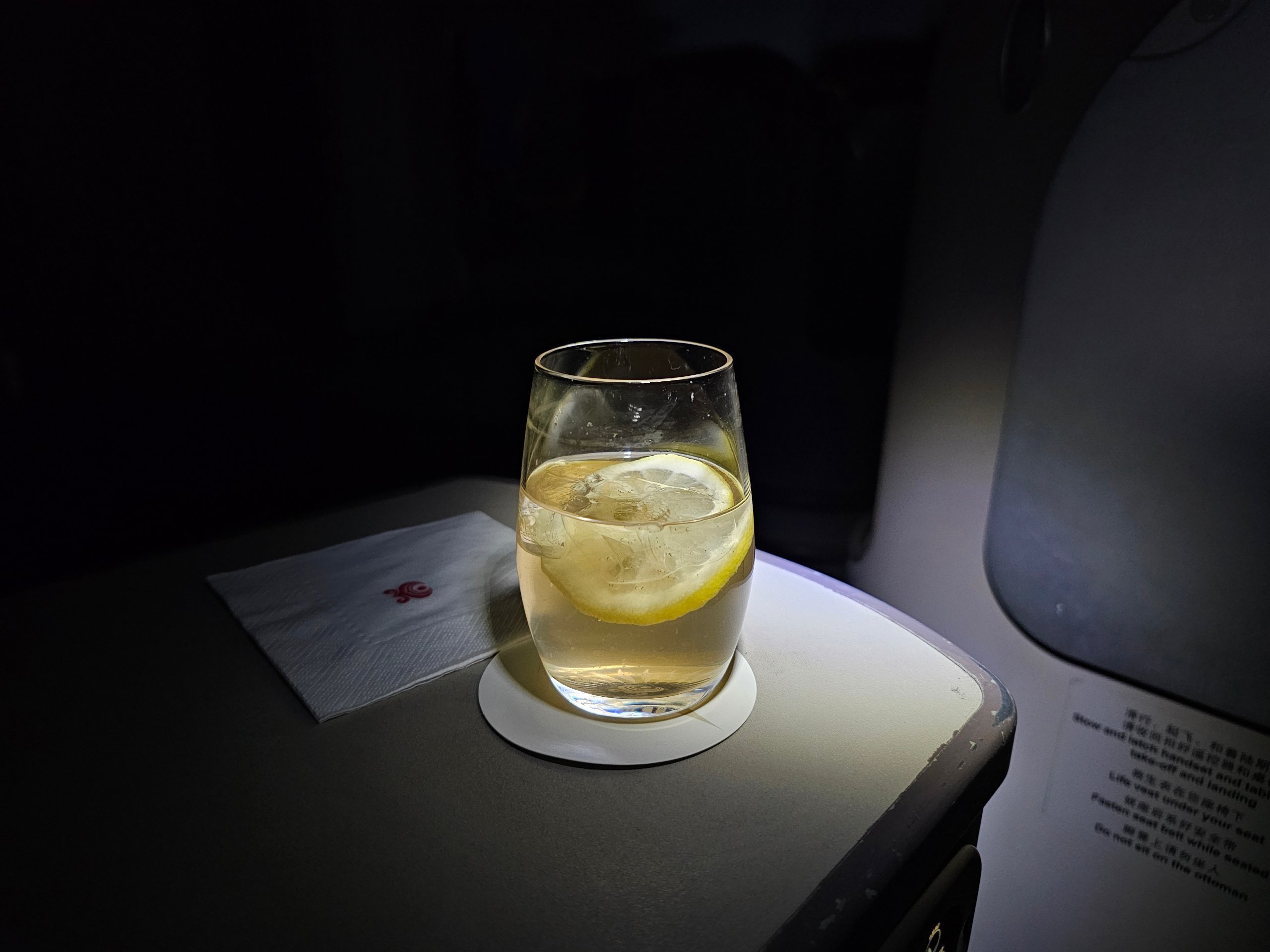 Δεν υπάρχει μικρό σνακ πριν από την προσγείωση, αλλά τουλάχιστον παραγγέλνω έναν καφέ με τη μορφή ενός αρκετά καλού πορτοκαλί εσπρέσο καρύδας.