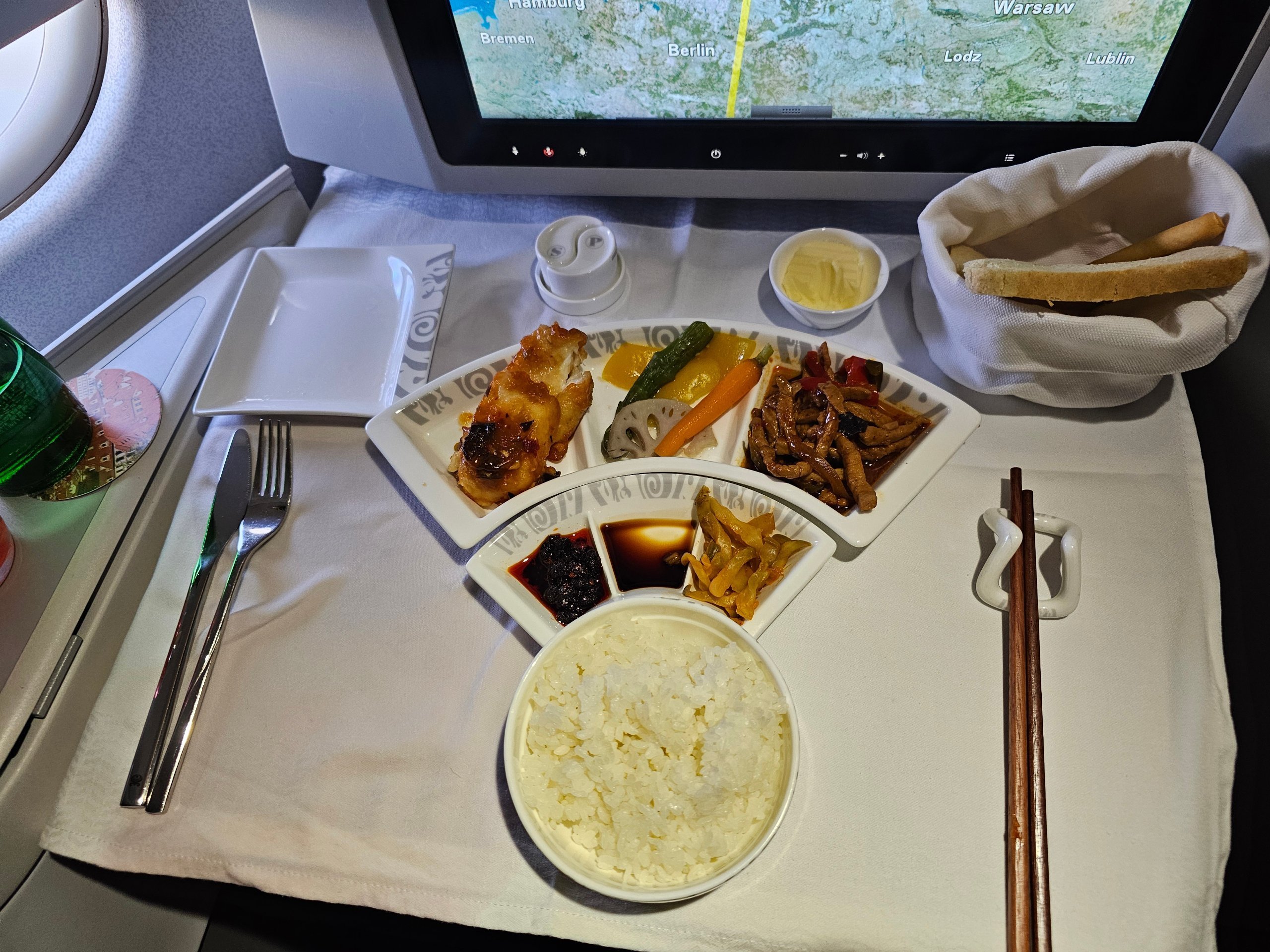 Αν περιμένετε γαστρονομία στο επίπεδο των κορυφαίων ασιατικών αερομεταφορέων, δεν θα τη βρείτε εδώ.