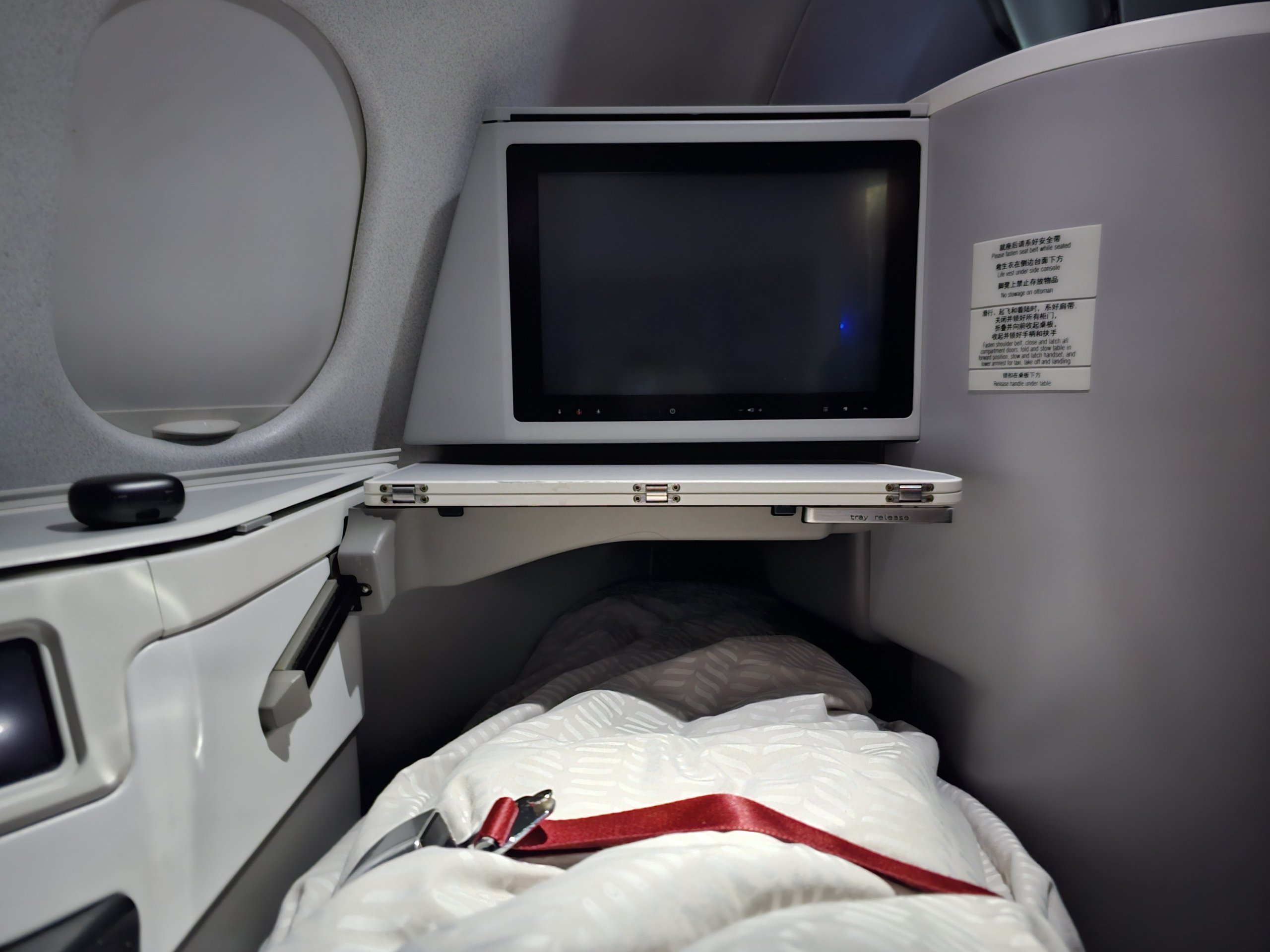 Το κρεβάτι είναι αρκετά μακρύ για μένα (είμαι 175 cm) και η καμπίνα είναι σχετικά ήσυχη. Αν ο κύριος στόχος σας είναι να φτάσετε στην Ασία νυσταγμένοι, το Airbus A330-300 εκπληρώνει αυτόν τον ρόλο.