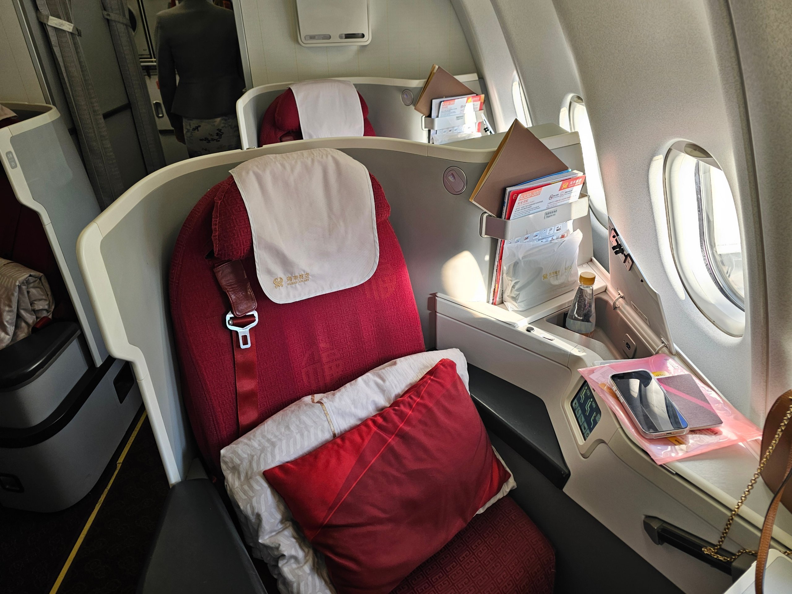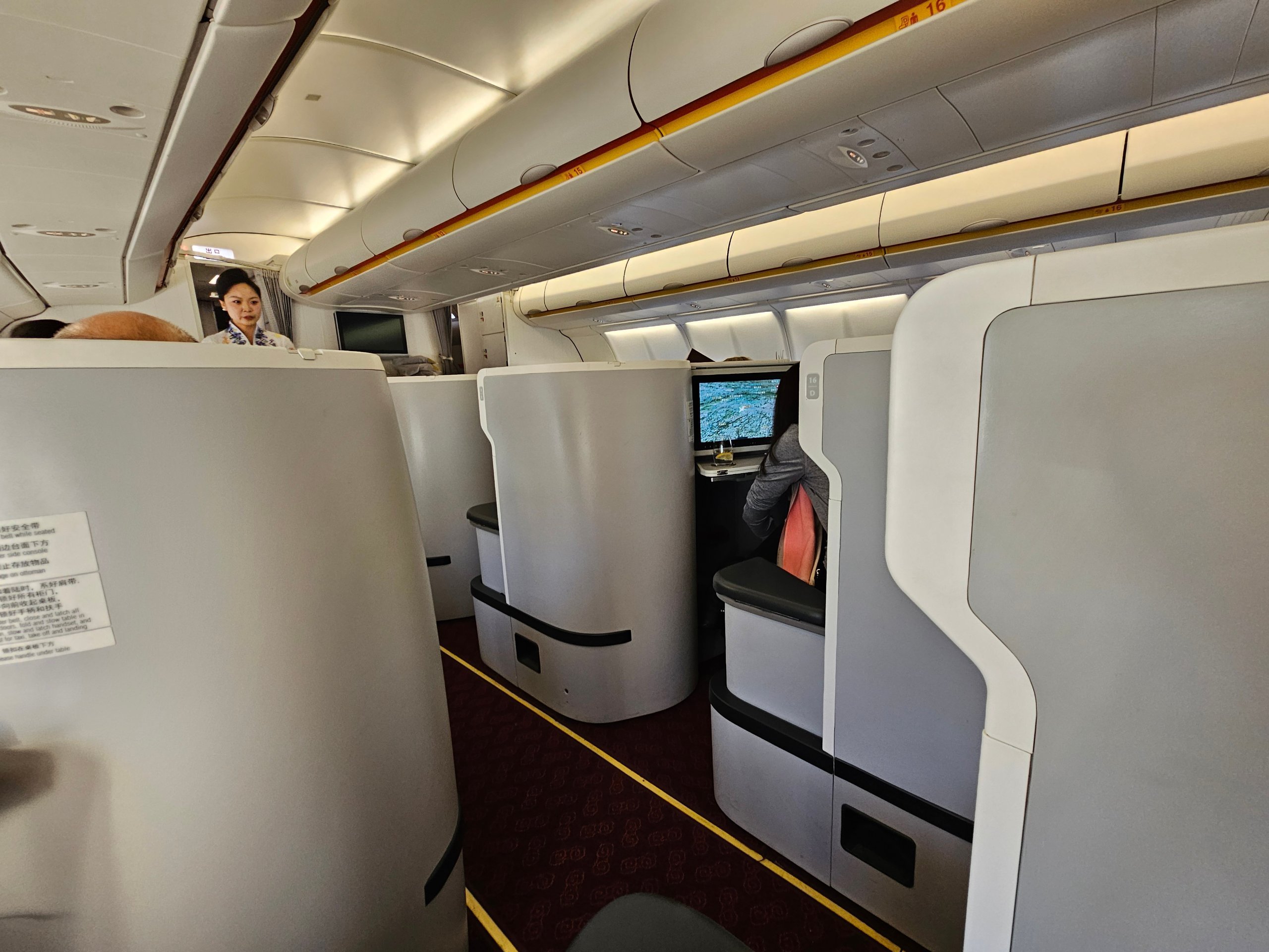 Το Airbus A330-300 της Hainan Airlines προσφέρει σταθερή ιδιωτικότητα και ένα πλήρως επίπεδο κρεβάτι στην επιχειρηματική θέση. Αυτά είναι τα βασικά που κάνουν τη διαφορά σε μια πτήση 10 ωρών.
