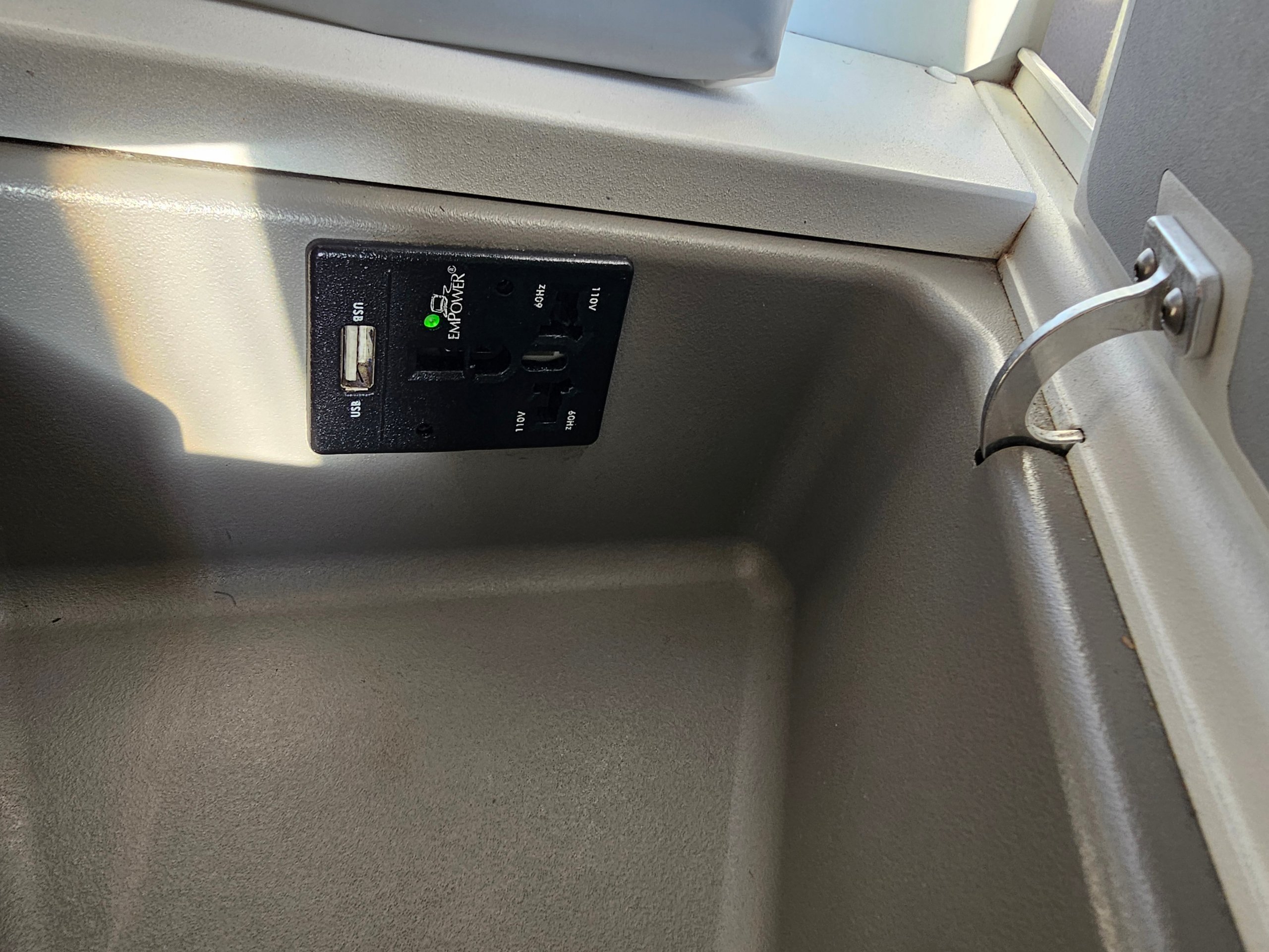 Οι χειρισμοί της θέσης είναι απλοί - μέσω της παλαιότερης αλλά λειτουργικής οθόνης αφής στα αριστερά. Υπάρχει επίσης μια μικρή λάμπα ανάγνωσης και μια γενική πρίζα ρεύματος με θύρα USB-A.