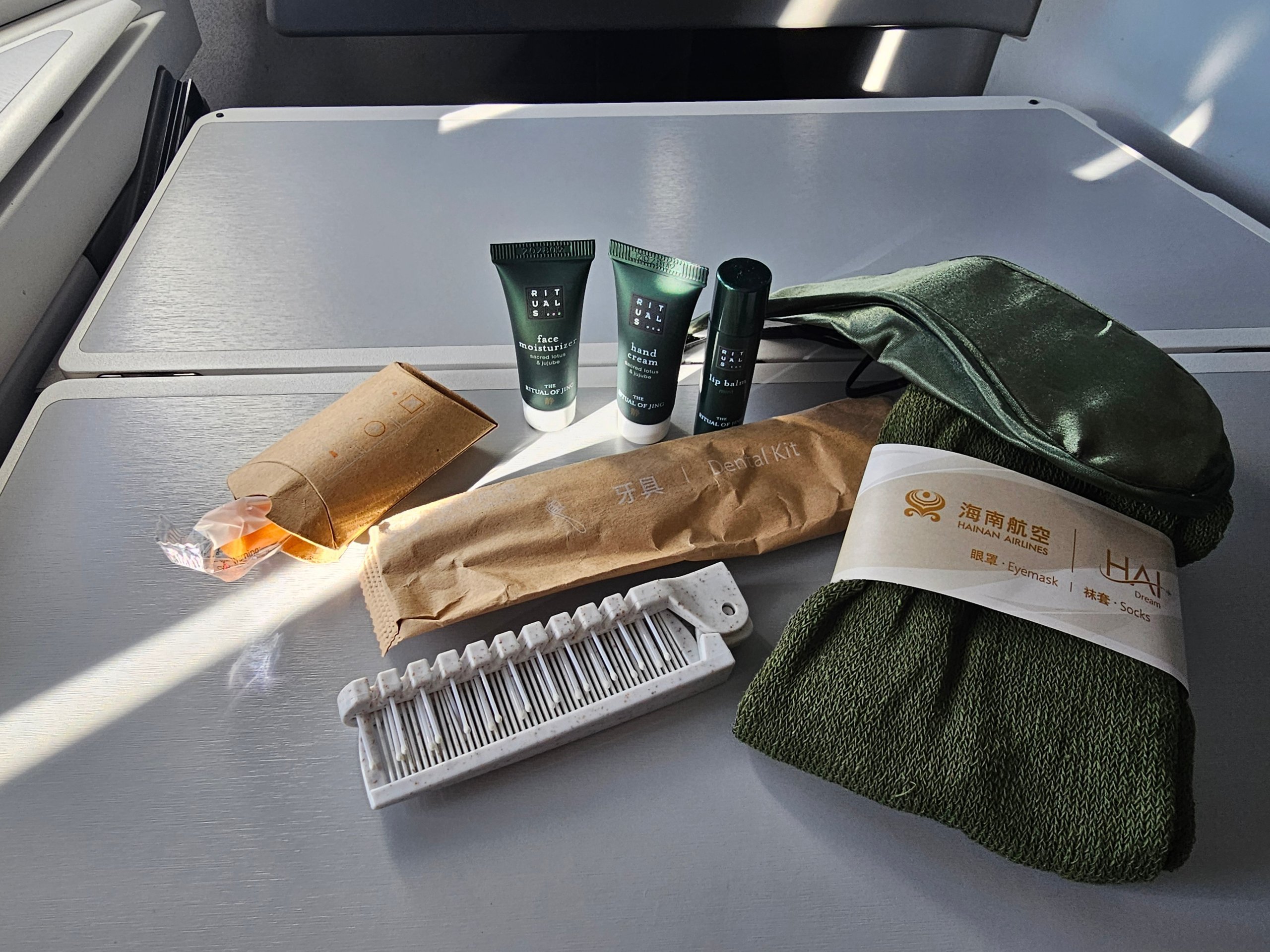 Το amenity kit στην business class της Hainan Airlines φαίνεται με την πρώτη ματιά συμπαγές, αλλά χωρίς ιδιαίτερη πρωτοτυπία.