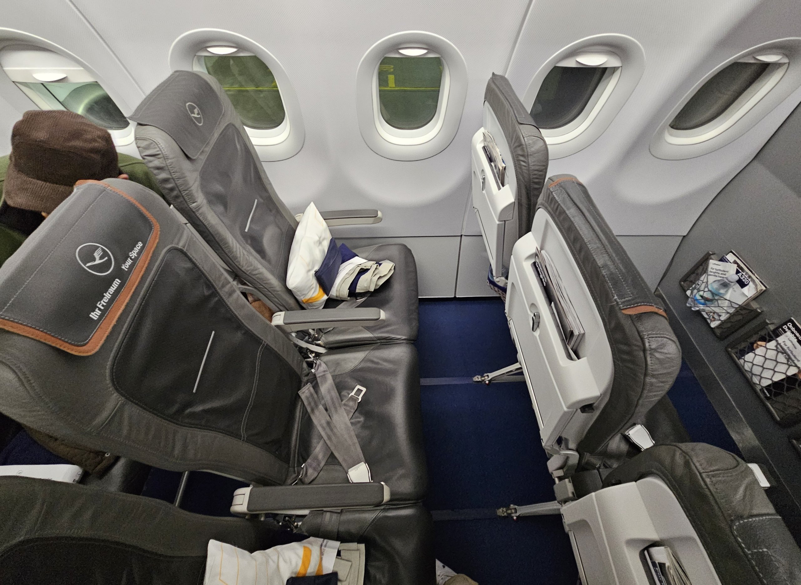 Η περιφερειακή επιχειρηματική θέση της Lufthansa στο στόλο των αεροσκαφών Airbus A32S στενής ατράκτου είναι γνωστή - τυπικά καθίσματα οικονομικής θέσης με εγγυημένη κενή μεσαία θέση.