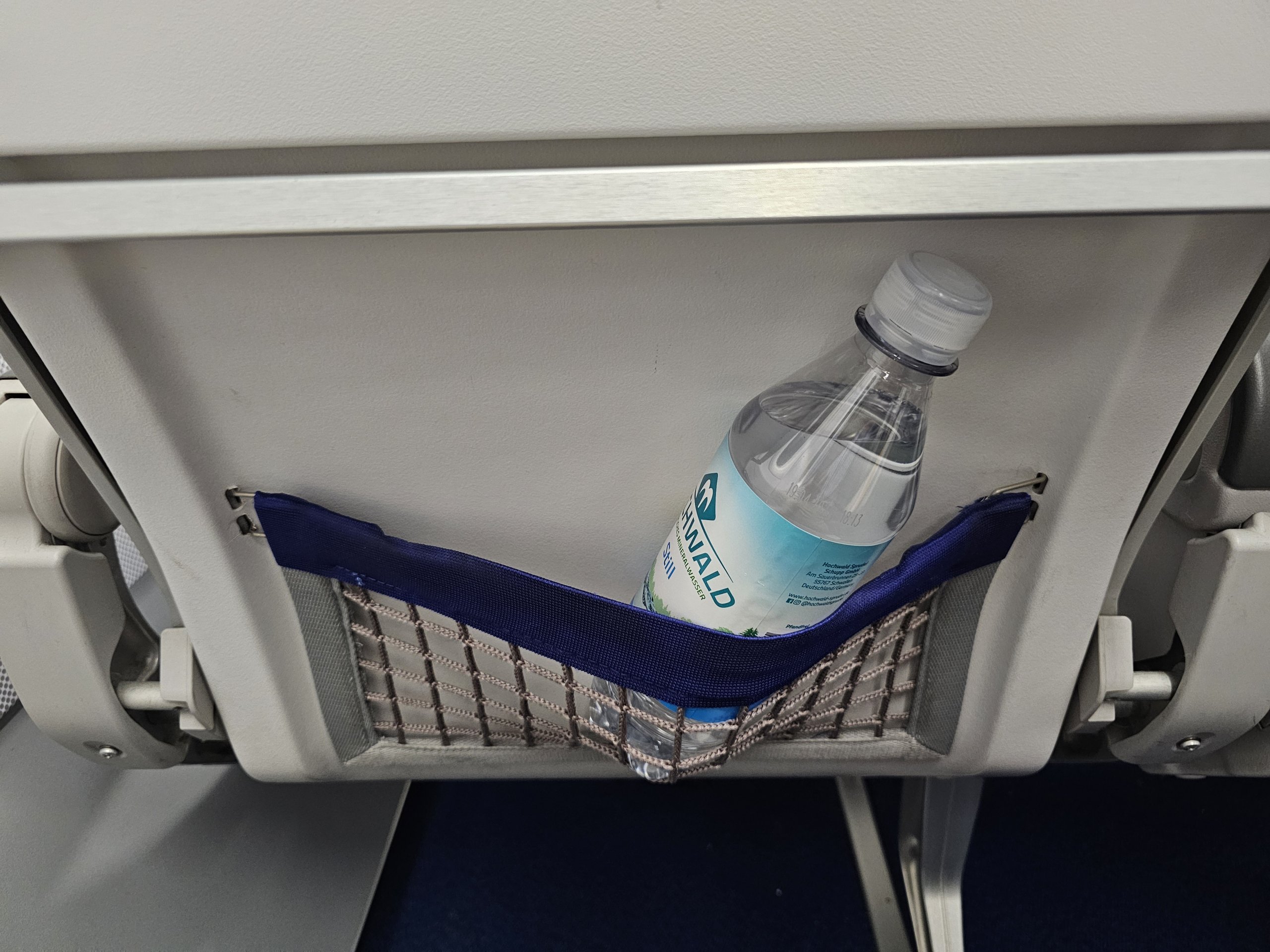 Δεν υπάρχει ποτό καλωσορίσματος πριν από την αναχώρηση. Αντικαθίσταται μόνο από ένα μπουκάλι νερό 0,5 λίτρου σε ένα δίχτυ δίπλα στο κάθισμα.