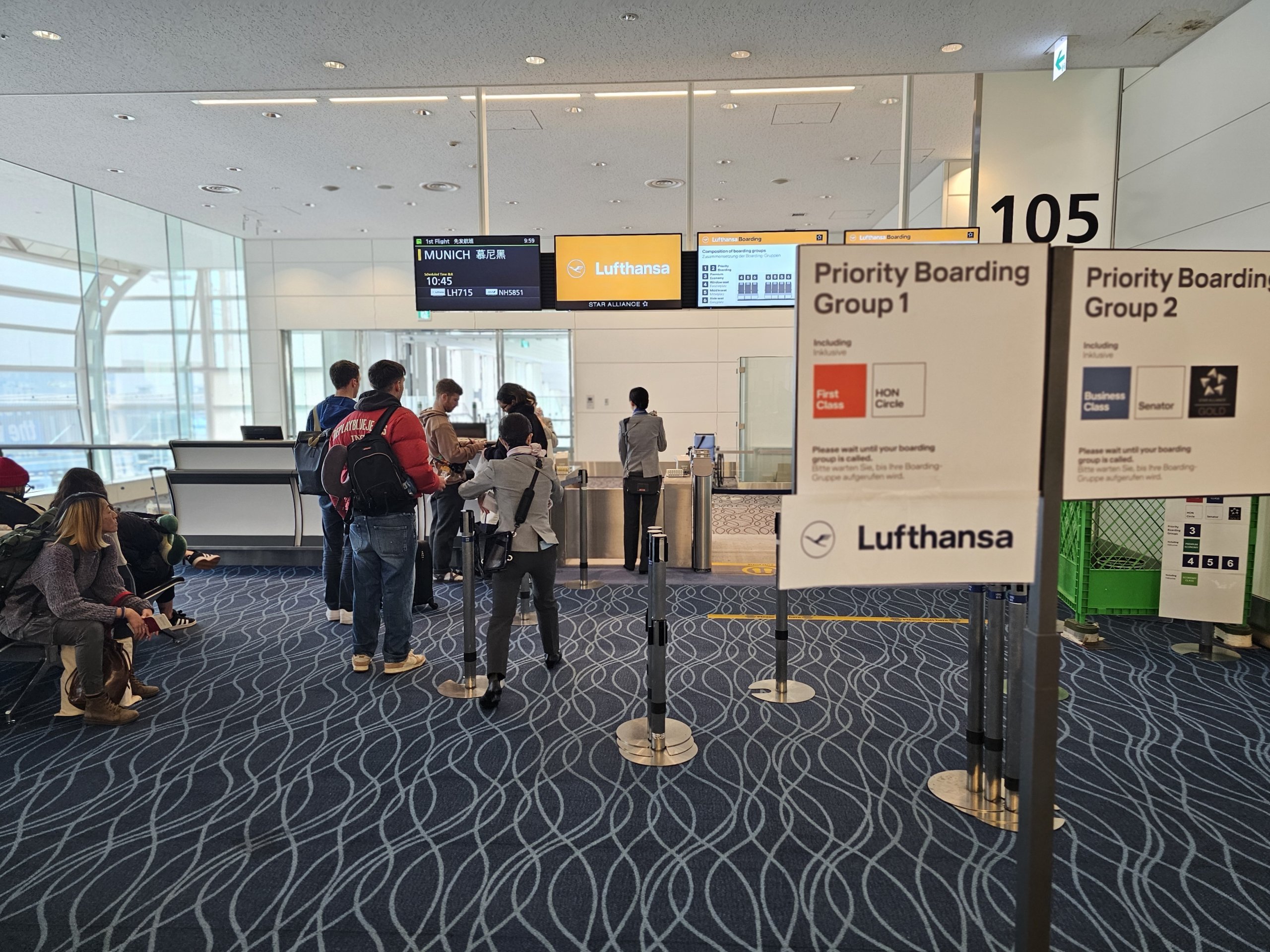 Δεδομένου ότι έχω δύο μεγάλες βαλίτσες, πρέπει να πάω στο γκισέ του check-in. Δυστυχώς, η Lufthansa δεν διαθέτει αυτοματοποιημένα γκισέ στο αεροδρόμιο Haneda, οπότε πρέπει να περιμένω μέχρι να ξεκινήσει το check-in.