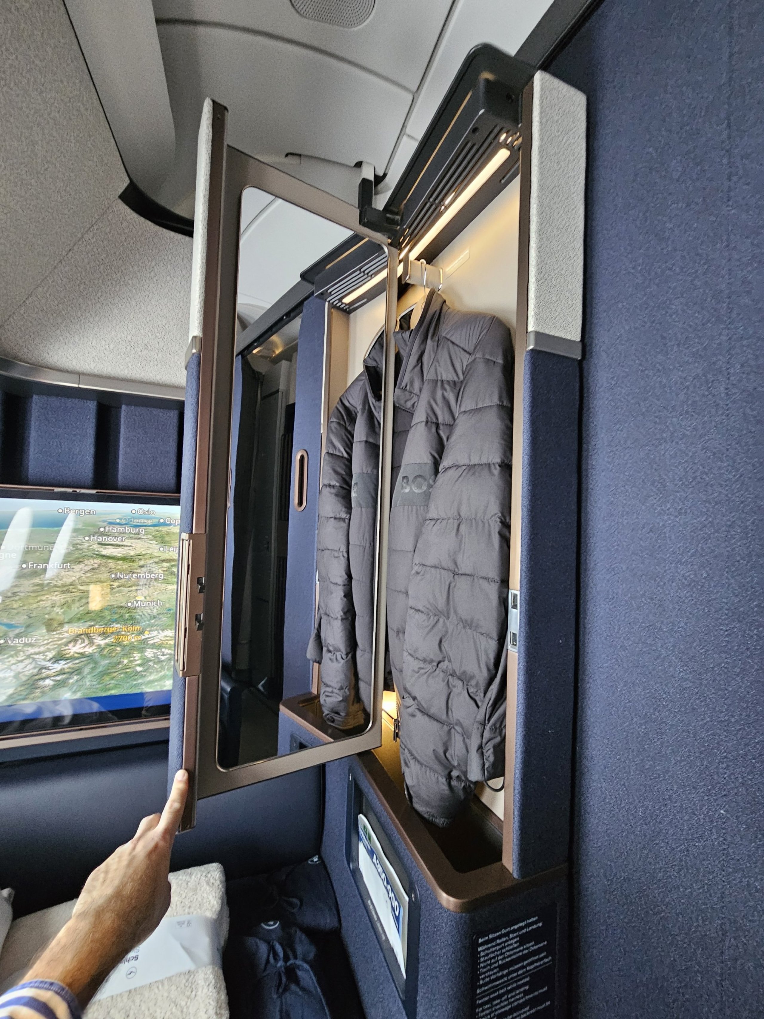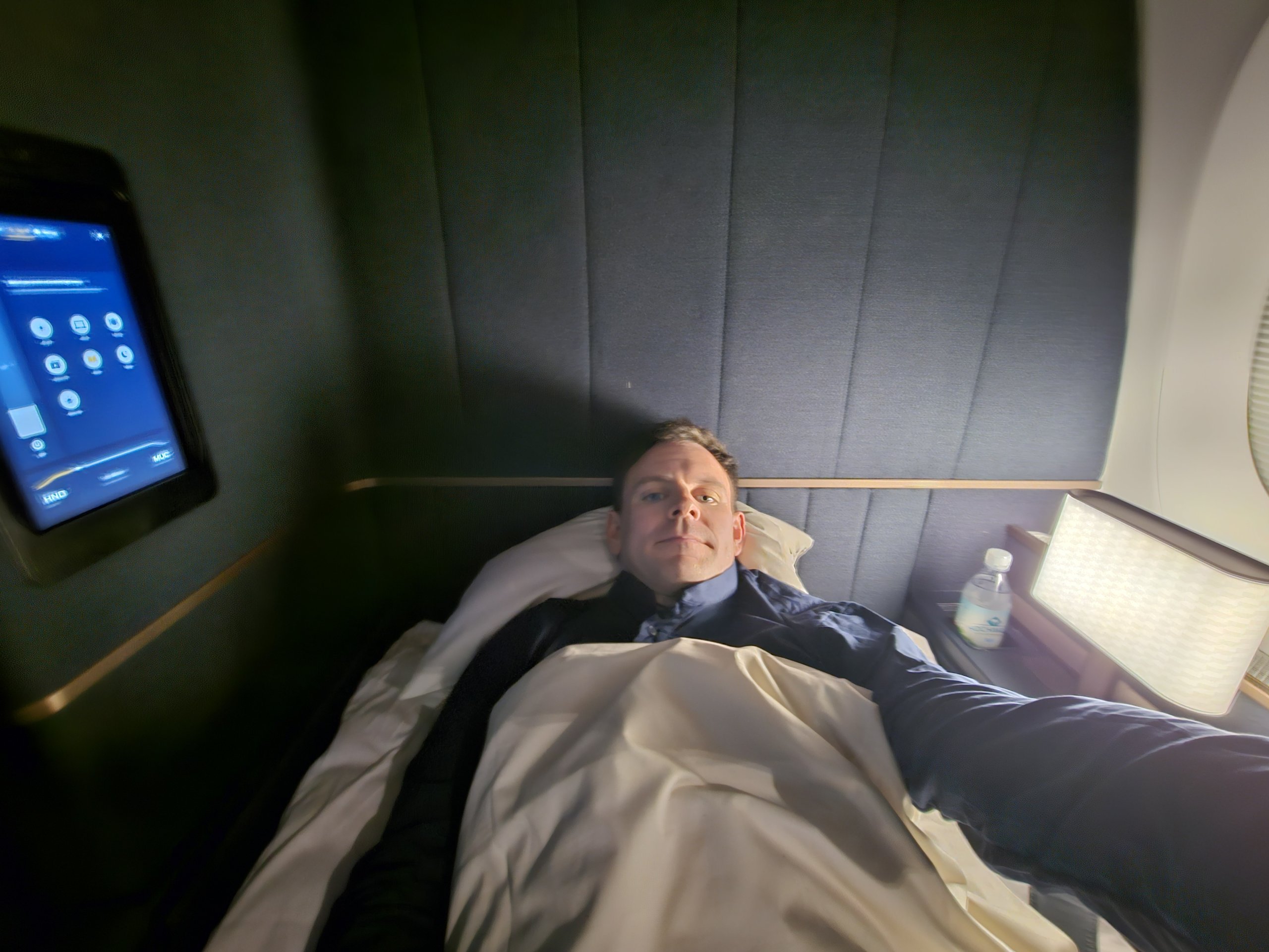 Ο σχεδιασμός είναι μάλλον αυστηρός στα γερμανικά, αλλά για μένα πολύ κομψός! Σίγουρα, το νέο La Premiere της Air France μπορεί να είναι πιο ξεκαρδιστικό σε σχεδιασμό, αλλά και πάλι, δεν έχει πόρτα από το δάπεδο μέχρι την οροφή ή παραβάν, κάτι που είναι απολύτως απαραίτητο για μένα στην Πρώτη Θέση.