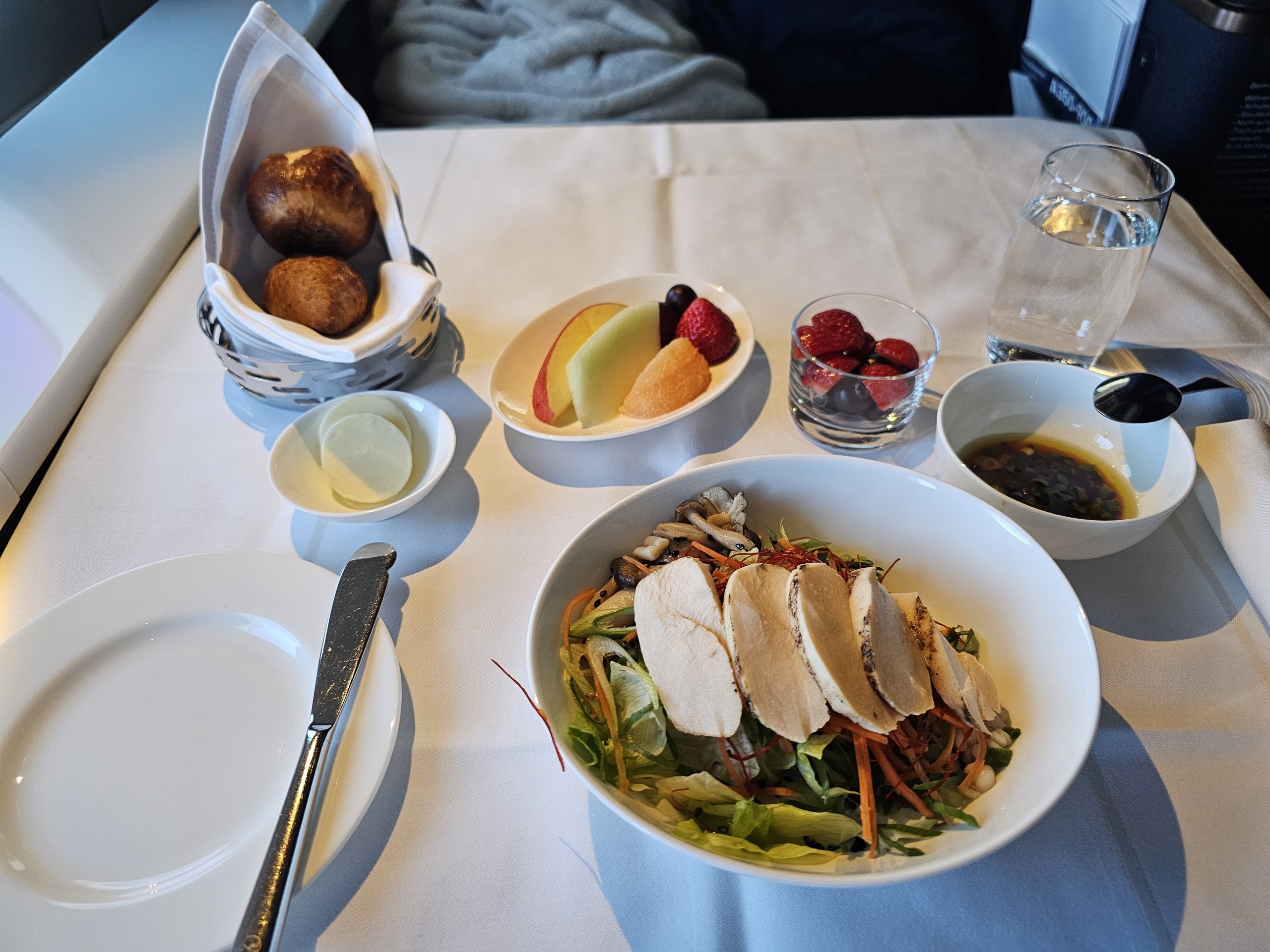 Οι προσφορές πρωινού φαγητού είναι λίγο αδύναμες, αλλά αυτό δεν με πειράζει, επειδή γνωρίζω ήδη από τις πτήσεις από τη Φρανκφούρτη προς την Ιαπωνία ότι οι υπηρεσίες πρώτης θέσης της Lufthansa είναι κάτι παραπάνω από επαρκείς.