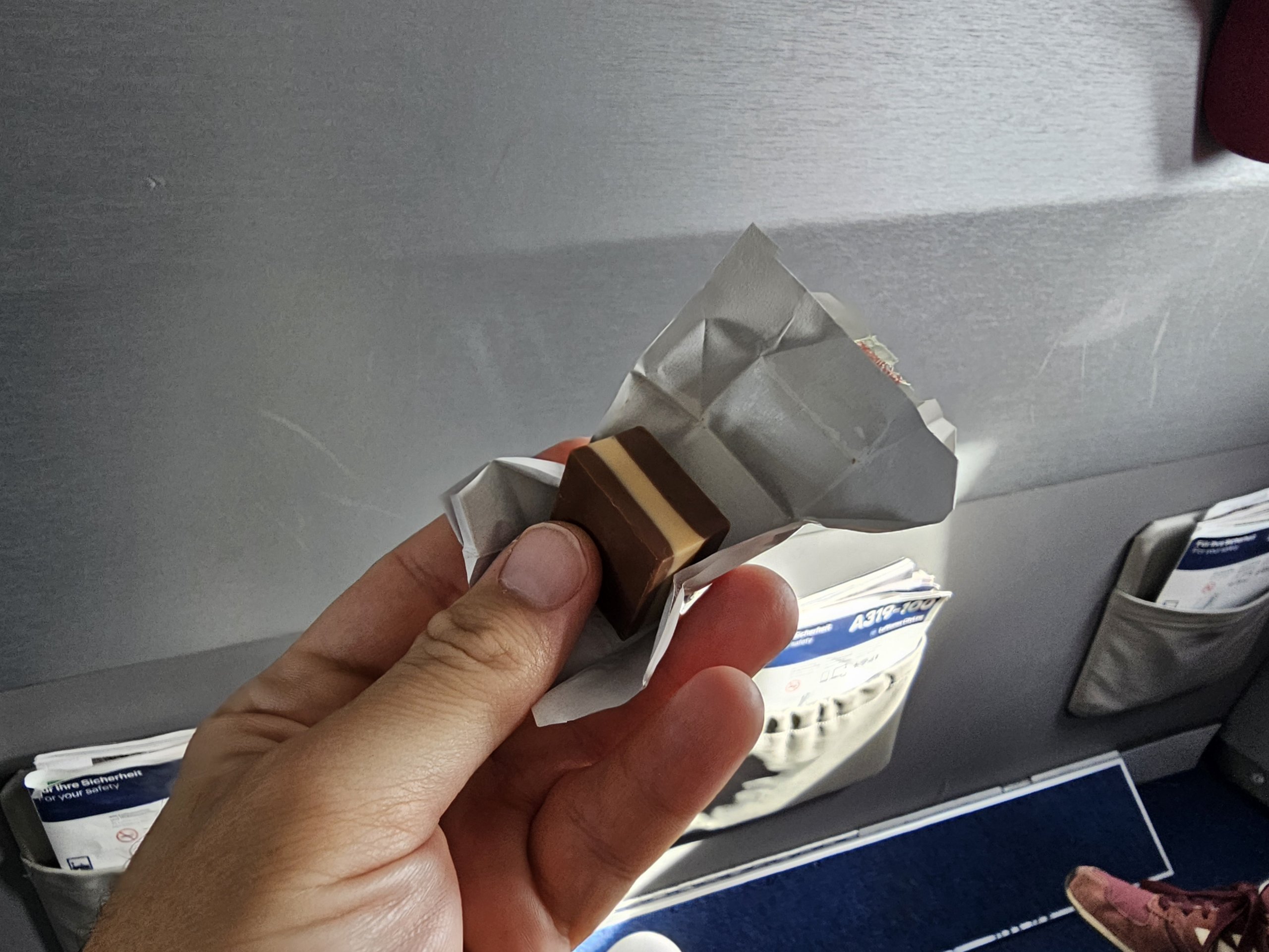 Λίγο πριν την προσγείωση παίρνουμε ακόμα μια μικρή κομψή σοκολάτα.