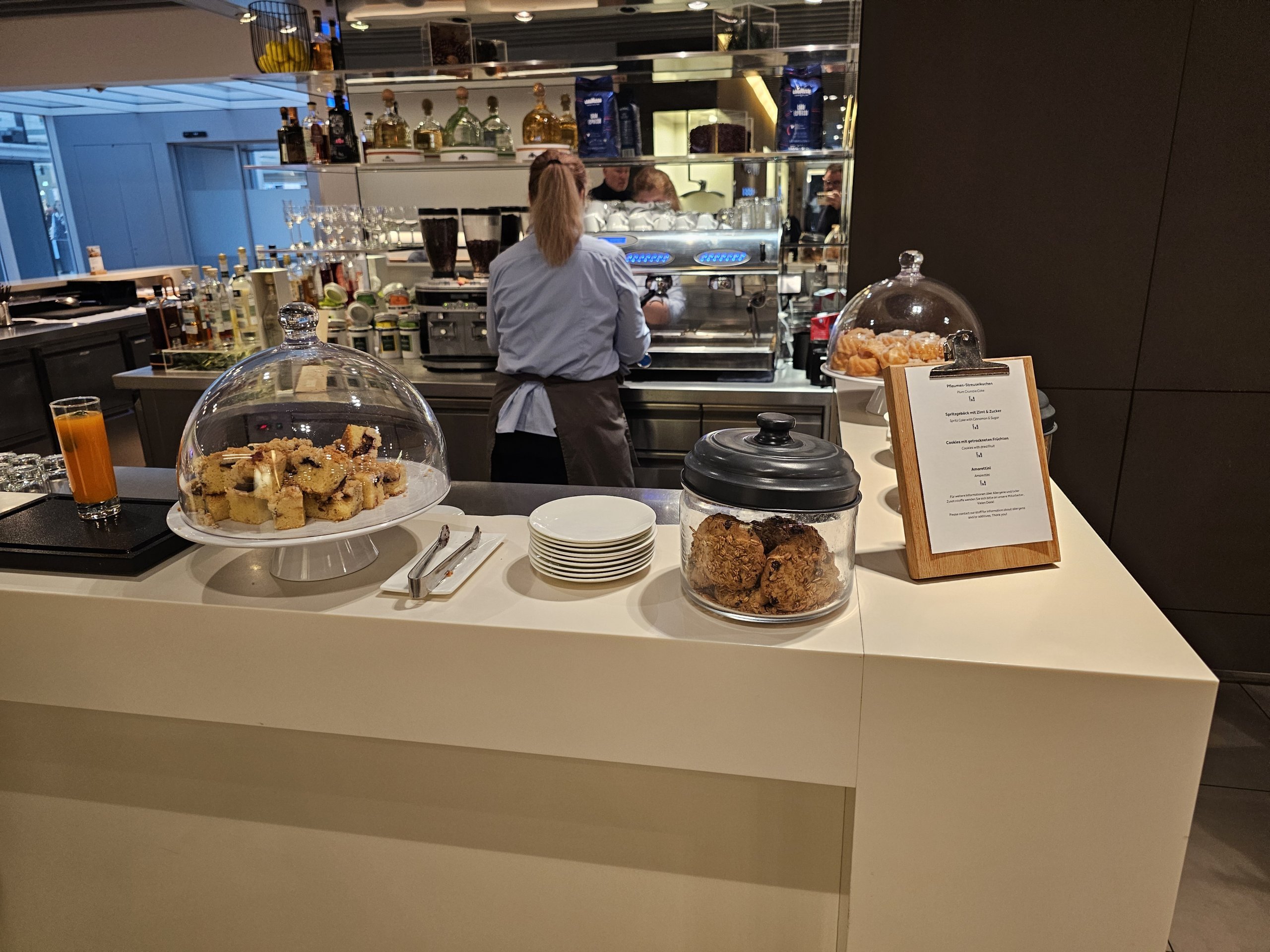 Για να είμαι ειλικρινής, δεν παρατηρώ μεγάλη διαφορά από το συνηθισμένο σαλόνι της Lufthansa Business Class. Η κύρια διαφορά είναι η παρουσία ενός μπαρ με πολύ μεγαλύτερη ποικιλία αλκοολούχων ποτών, αλλά δεδομένου ότι πίνω πολύ λίγο αλκοόλ σε ταξίδια μόνος μου, αυτή η αλλαγή δεν είναι καθόλου σημαντική για μένα.