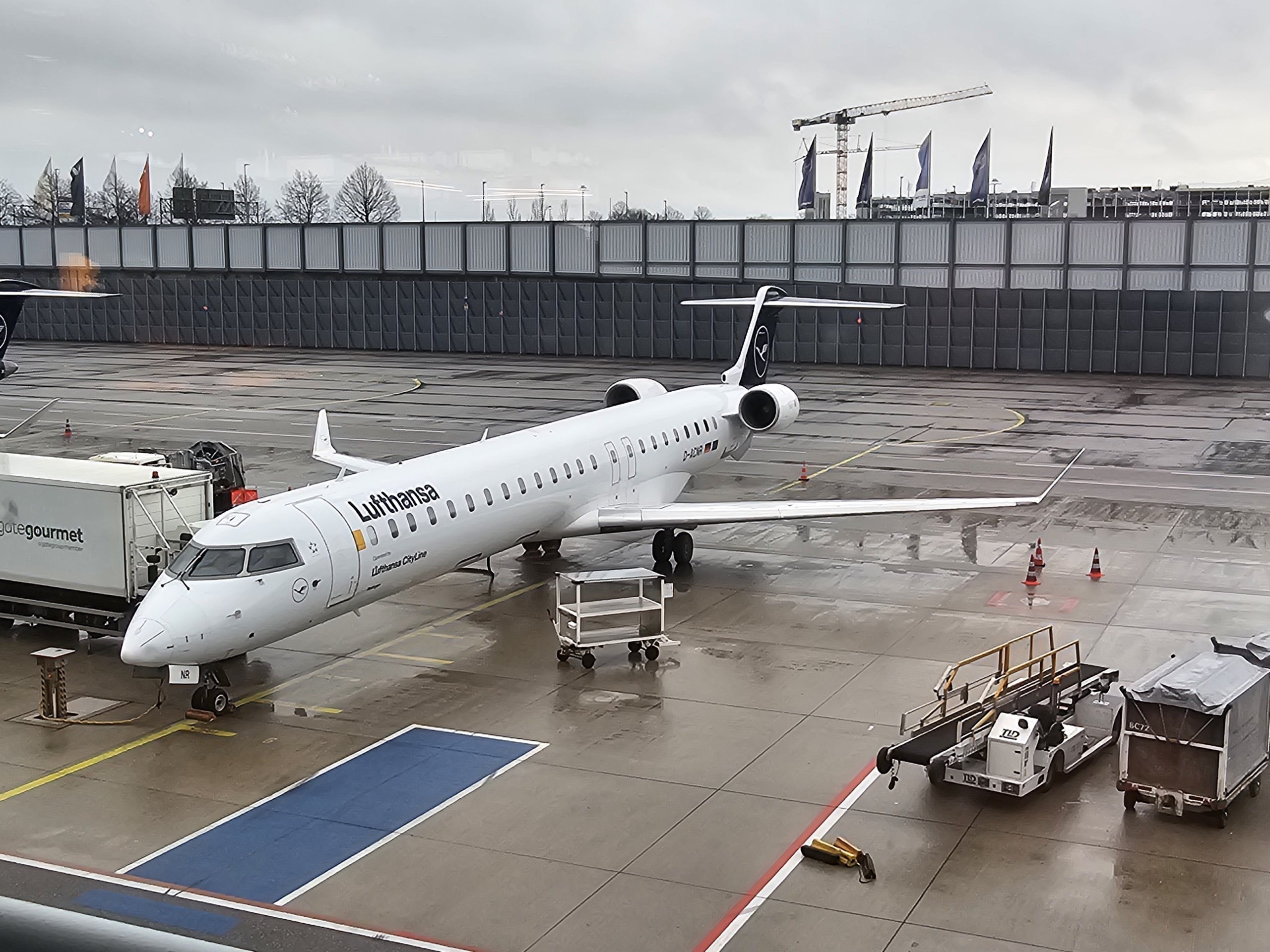 Πηγαίνω στο αεροπλάνο περίπου 15 λεπτά πριν από την επιβίβαση. Πετάμε με το μικρότερο αεροσκάφος του στόλου της Lufthansa - ένα Bombardier CRJ-900 - που σημαίνει ότι η επιβίβαση δεν γίνεται μέσω της γέφυρας επιβίβασης, αλλά με τα πόδια.