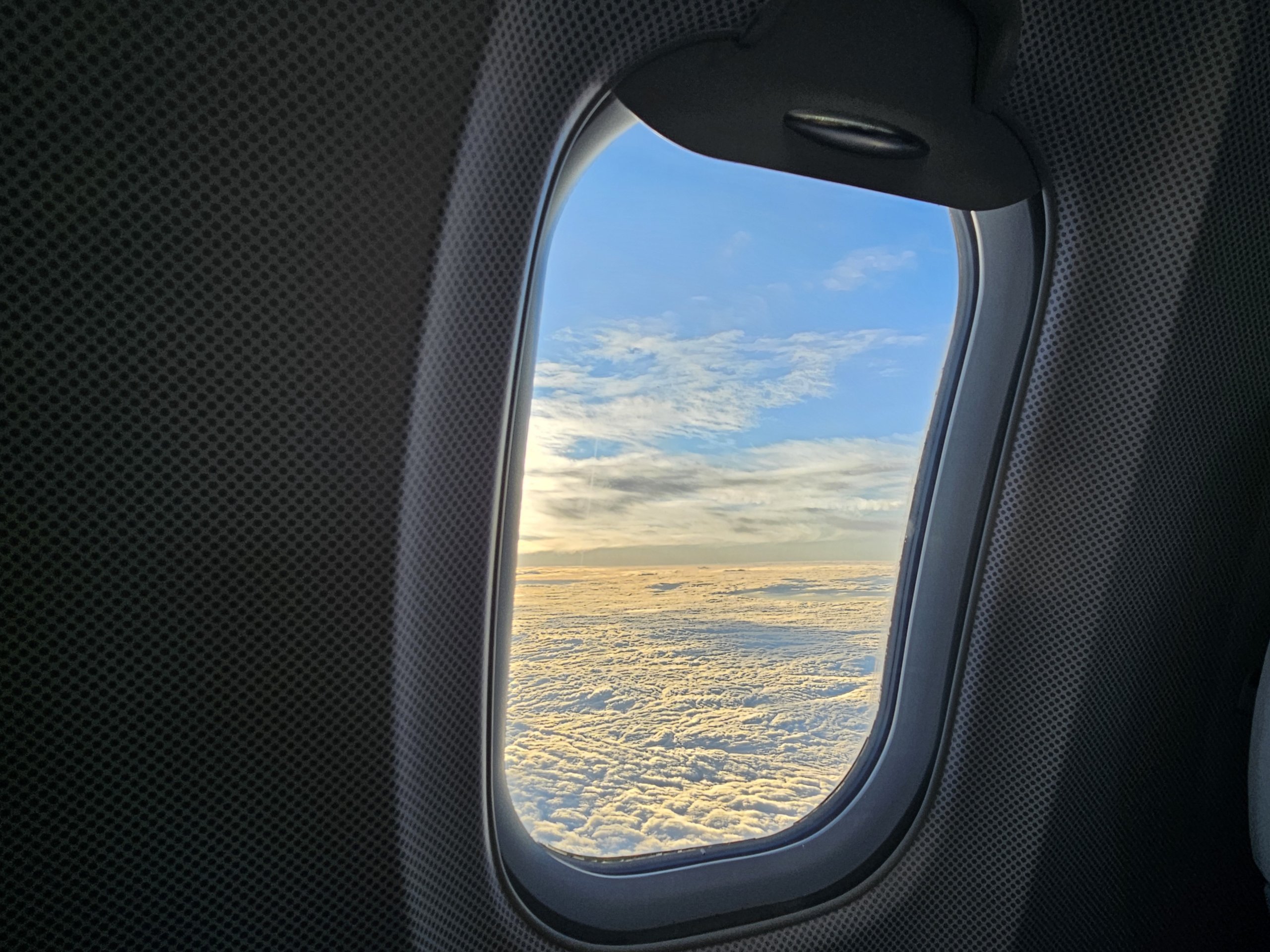 Το ποτό καλωσορίσματος εξακολουθεί να είναι στάνταρ, με δυνατότητα επιλογής μεταξύ σαμπάνιας, μη αλκοολούχων χυμών, κοκτέιλ με την υπογραφή της Avionic ή νερού. Για αυτή την πτήση, επιλέγω μόνο νερό.