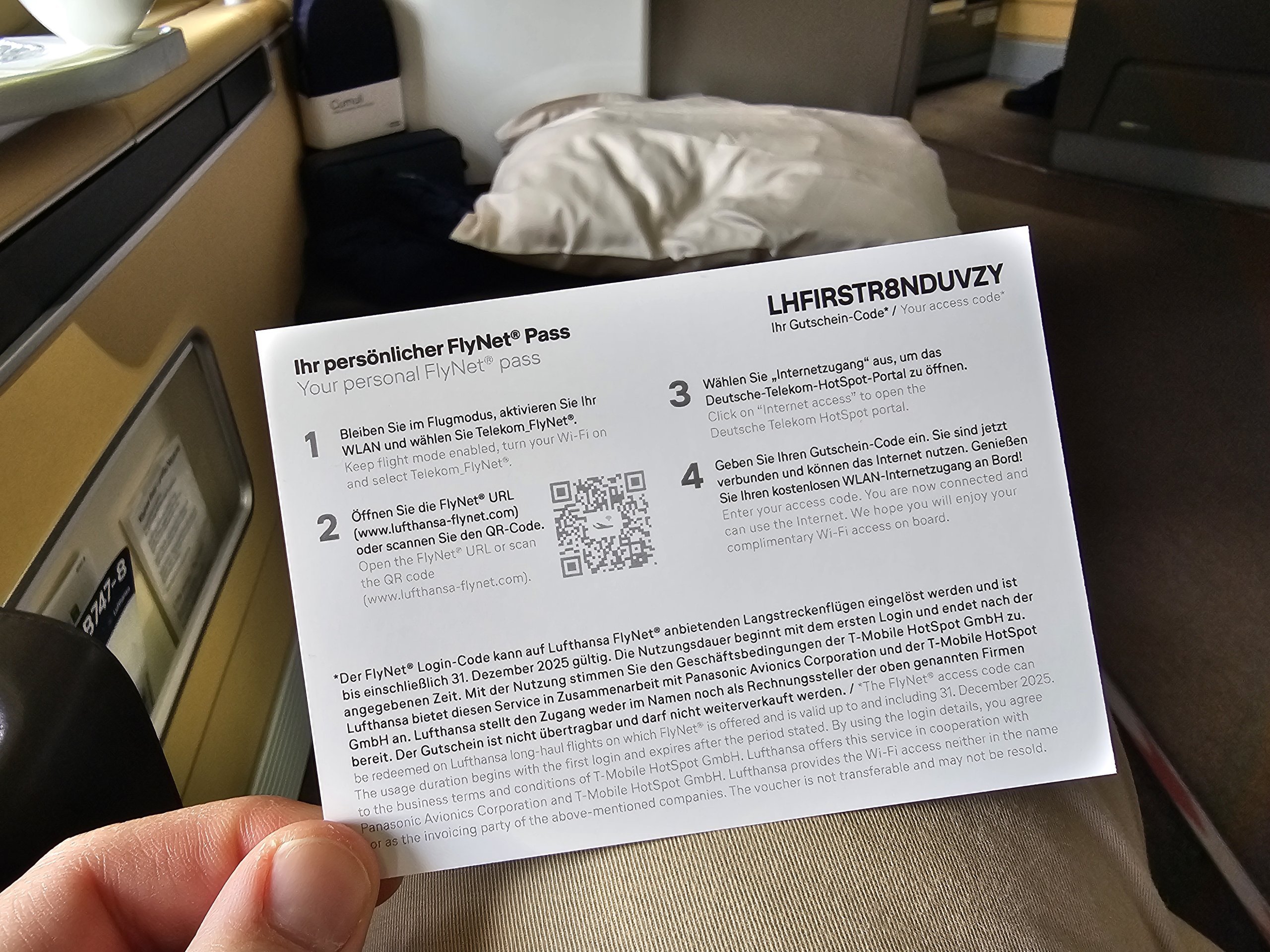 Πριν από την απογείωση θα λαμβάνετε πάντα μια κάρτα με έναν κωδικό, τον οποίο εισάγετε όταν συνδέεστε στο Fly Net.