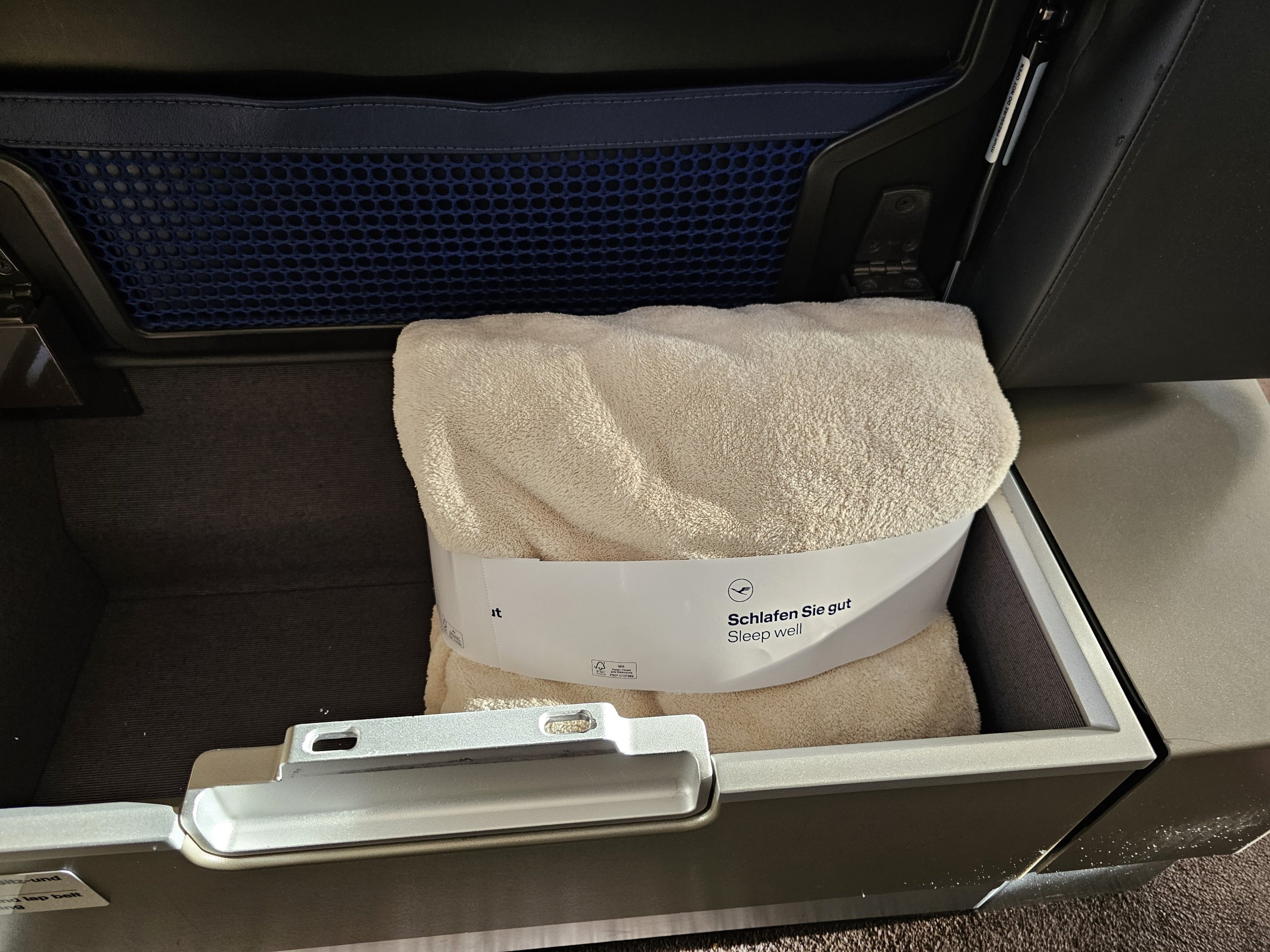 Το κάθισμα είναι εξοπλισμένο με ένα εξαιρετικά άνετο μαξιλάρι και μια κουβέρτα που μπορούν να χρησιμοποιηθούν ανά πάσα στιγμή κατά τη διάρκεια της πτήσης. Για τον ύπνο, στη συνέχεια θα λάβετε άλλη μια κουβέρτα και κλινοσκεπάσματα από το πλήρωμα.