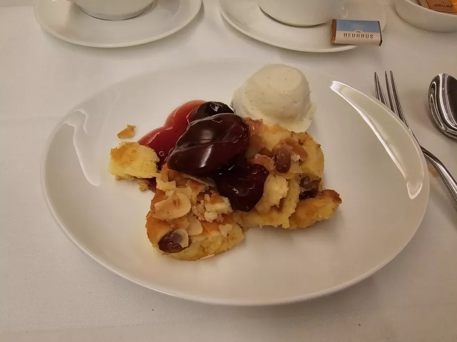 Λατρεύω το παραδοσιακό γερμανικό Kaiserschmarren. Εδώ το παίρνω με σάλτσα δαμάσκηνου και ένα υπέροχο παγωτό βανίλια. Δεν νομίζω ότι έχω φάει ποτέ καλύτερο κρακεράκι καίσαρα.