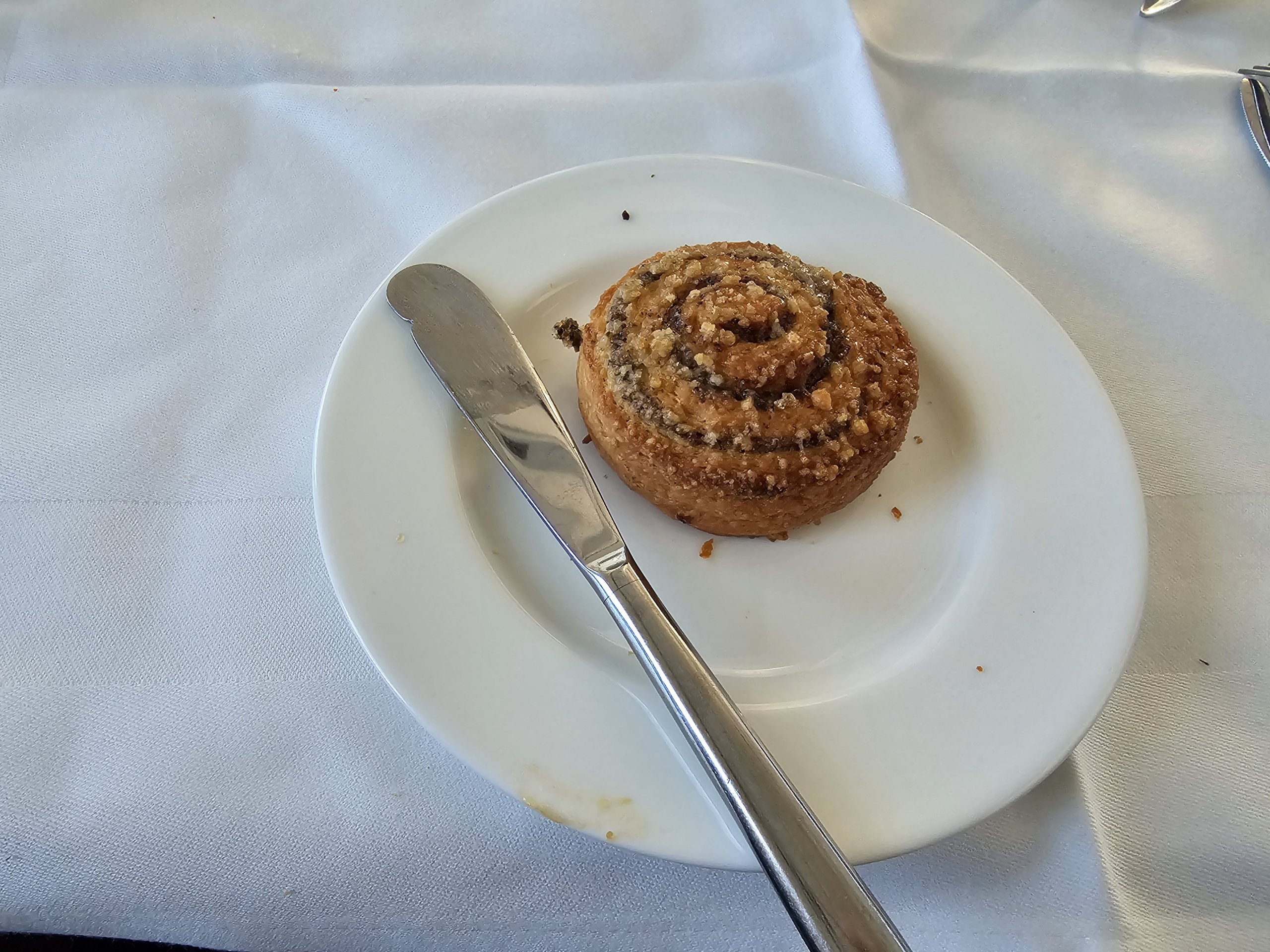 Ενώ υπάρχει επιλογή πρωινού στο μενού, στην πραγματικότητα το πλήρωμα περνάει από το καλάθι με το πρωινό και μπορείτε να διαλέξετε και να συνδυάσετε απολύτως οποιοδήποτε στοιχείο του μενού.