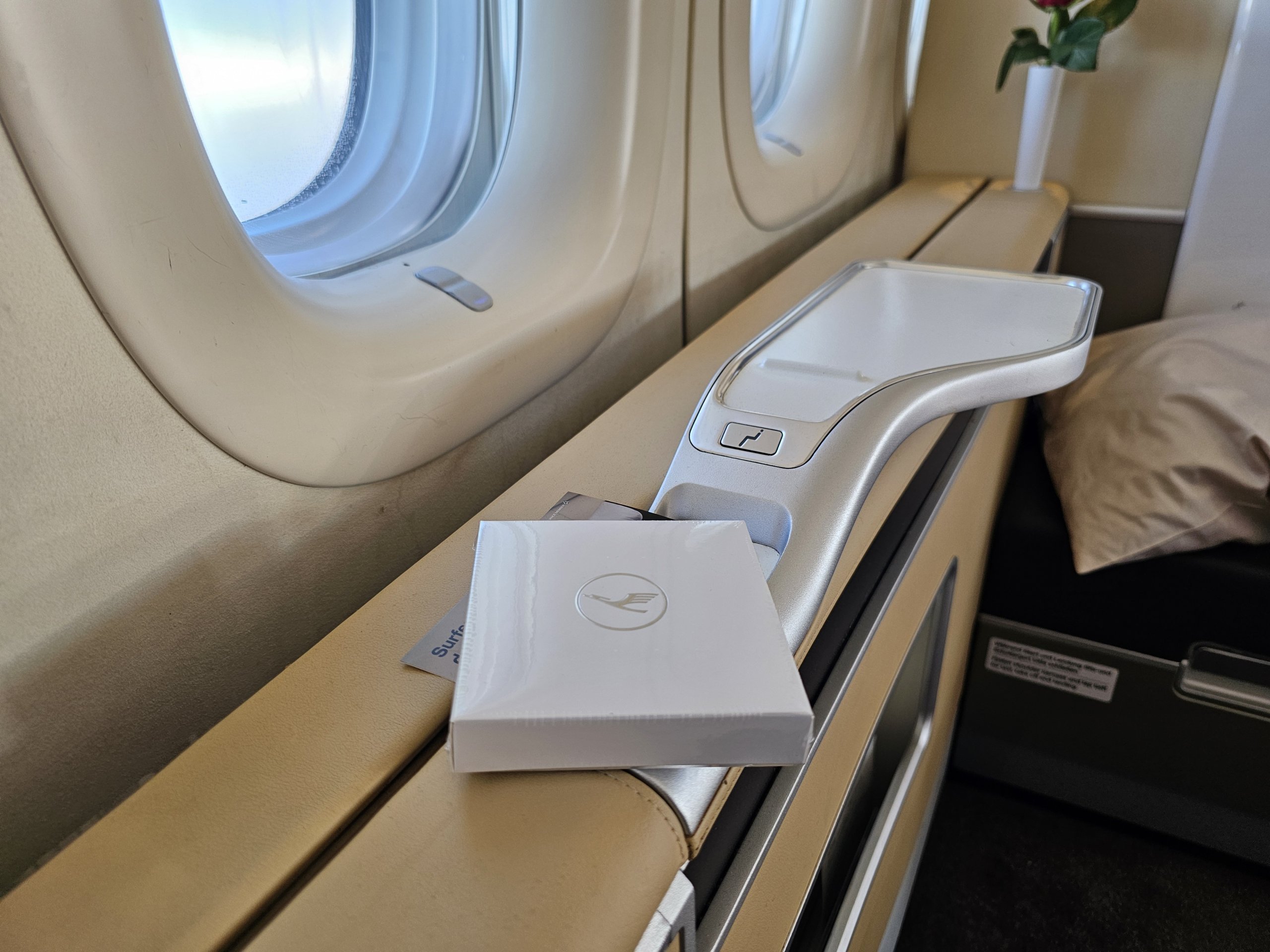 Επιλέγω ήδη εκ των προτέρων τη θέση 2Α. Σε αντίθεση με τη νέα Business Class της Lufthansa Allegris, δεν υπάρχει επιπλέον χρέωση για την επιλογή συγκεκριμένης θέσης στην Πρώτη Θέση.