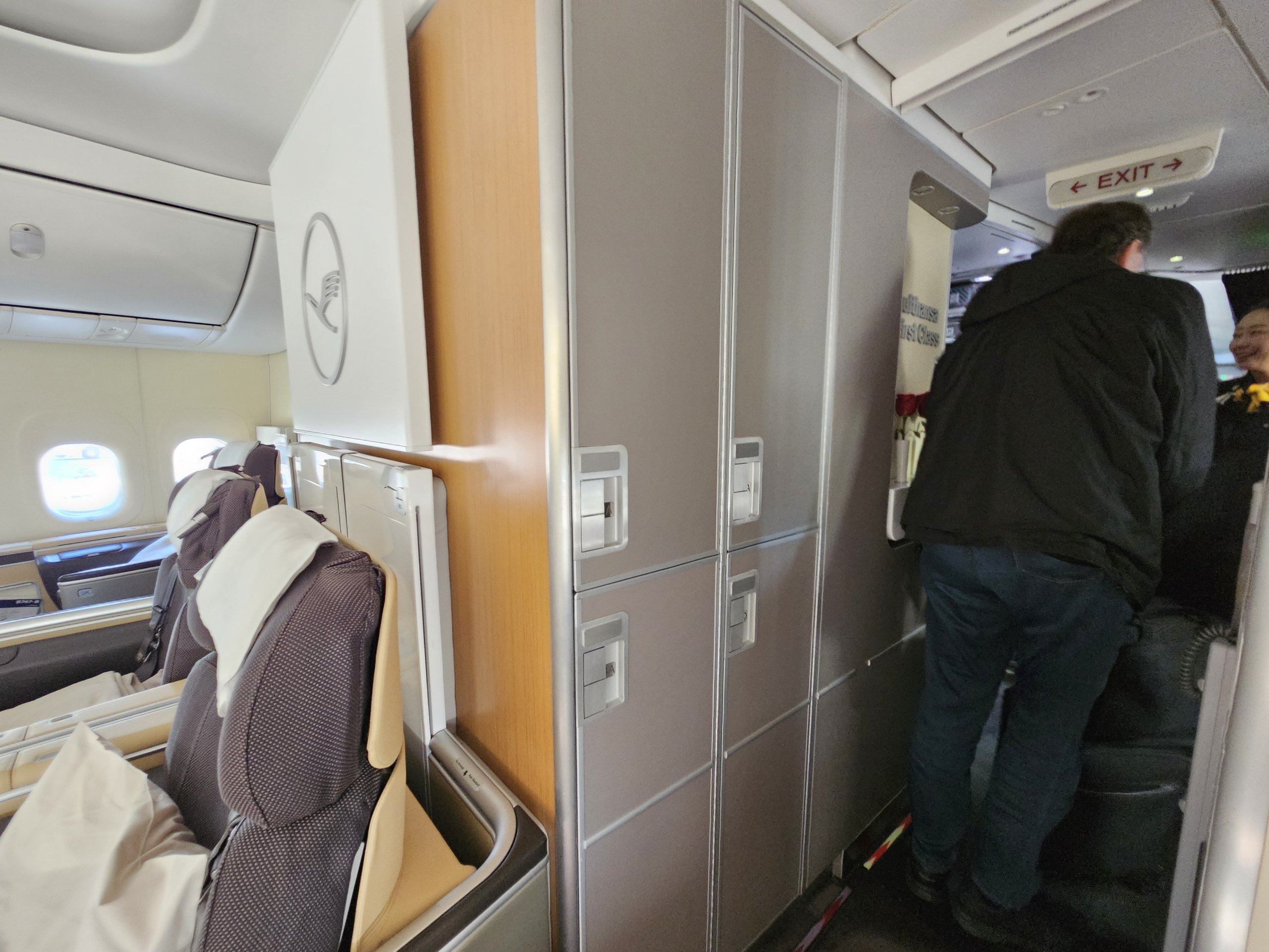 Το Boeing 747-8 διαθέτει επίσης στάνταρ ντουλαπάκια πάνω από τα κεφάλια, στα οποία αποθηκεύω το σακίδιό μου. Αυτό λείπει από το Airbus A350 στη νέα Πρώτη Θέση Allegris, για παράδειγμα.
