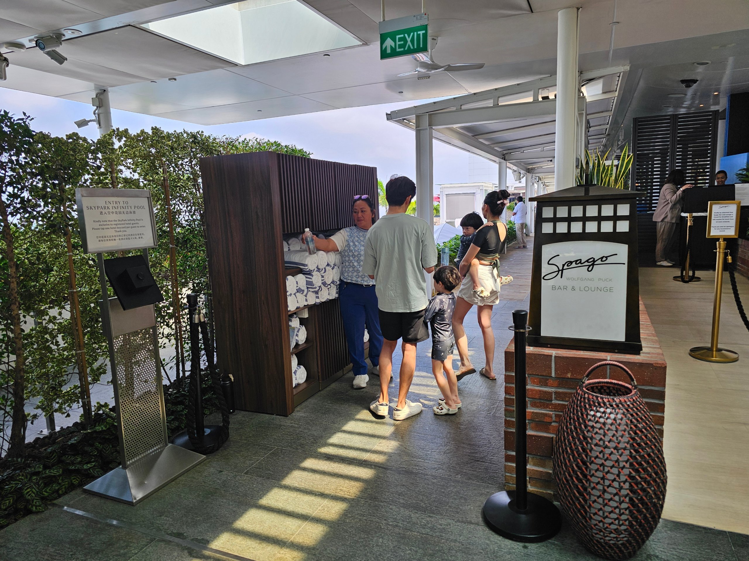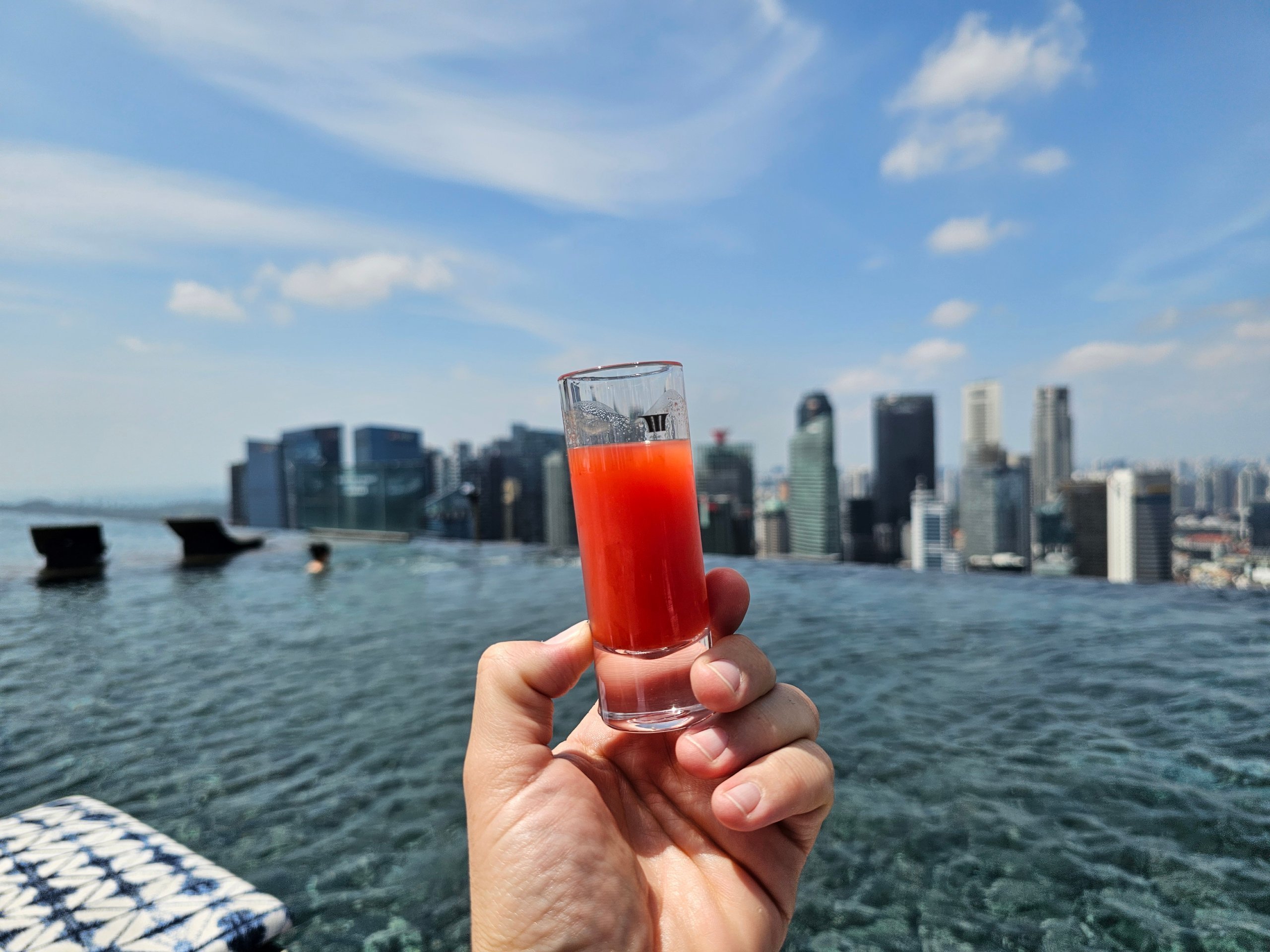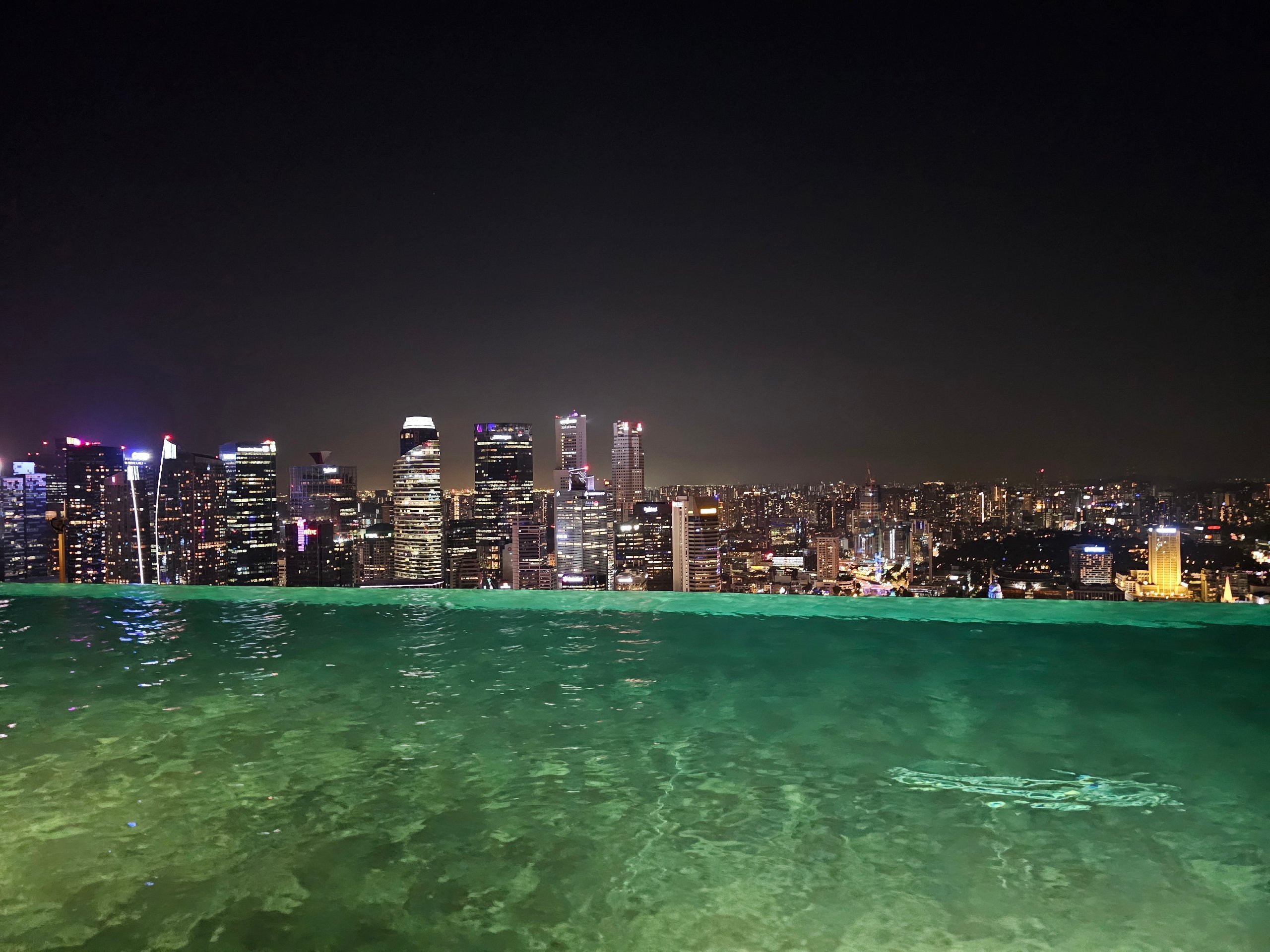 Από το μήκος της πισίνας, το κέντρο της Σιγκαπούρης βρίσκεται στην παλάμη του χεριού σας. Και αν περπατήσετε στην άλλη πλευρά της οροφής, μπορείτε να δείτε τους Κήπους του Κόλπου και εκατοντάδες φορτηγά πλοία στο βάθος στην ανοιχτή θάλασσα.