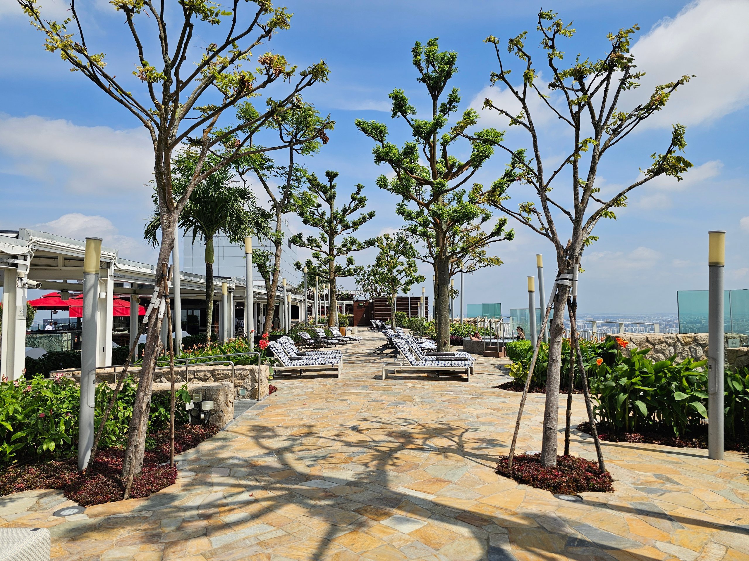 Οι ξαπλώστρες βρίσκονται επίσης στην άλλη πλευρά της οροφής όπου δεν υπάρχει πισίνα και είναι πιο ήσυχα.