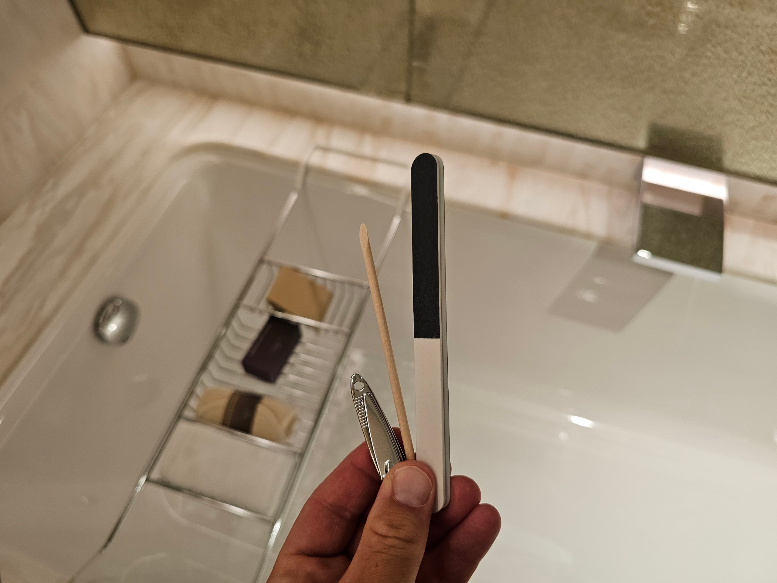 - πλούσιο σετ ανέσεων που περιλαμβάνει είδη ξυρίσματος, ένα κουτί για σιδεράκια ή ένα μικρό σετ ραπτικής