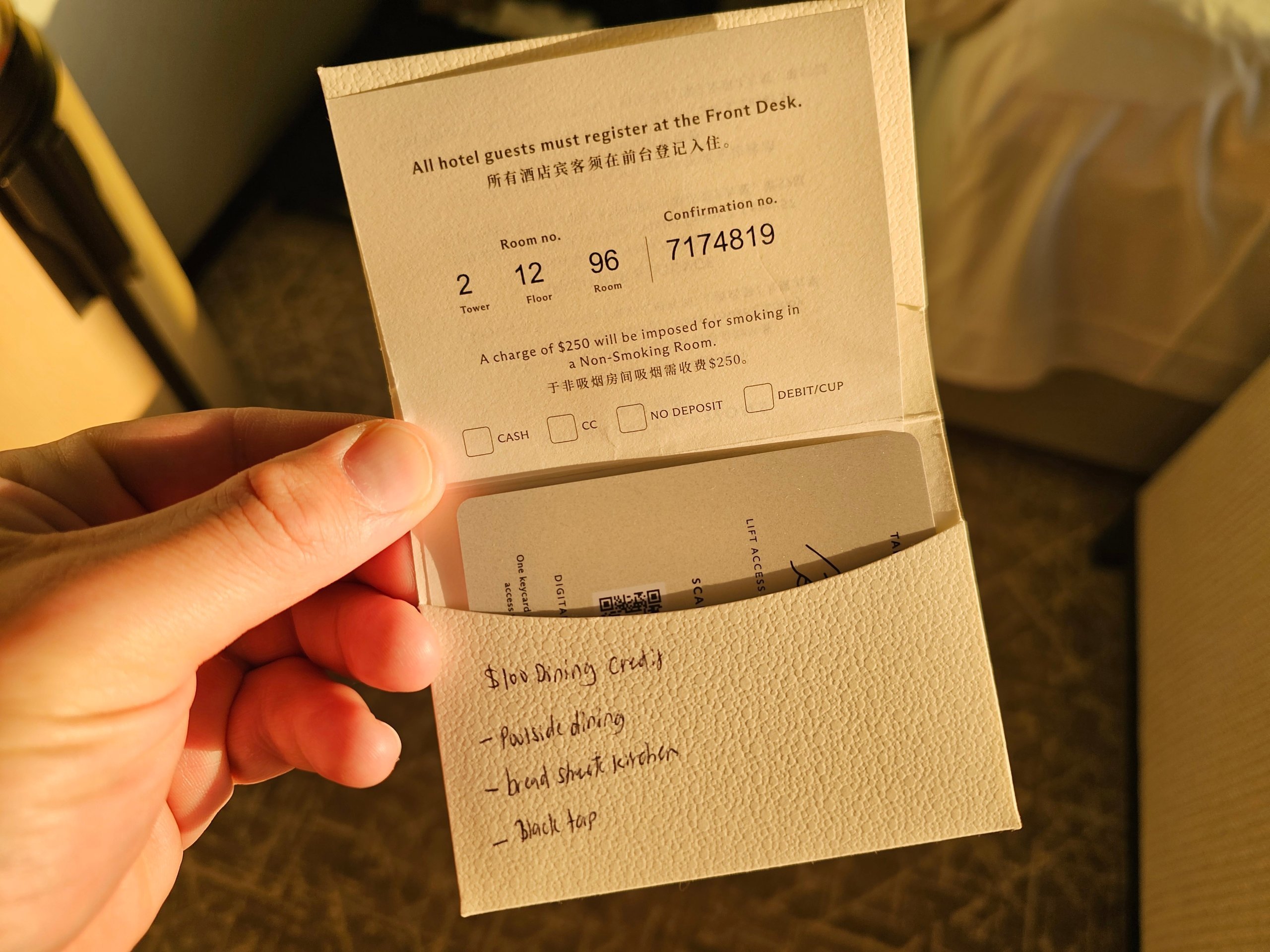 Επιπλέον, περιλάμβανε μια πίστωση 100 sgd για να ξοδέψετε σε επιλεγμένα μπαρ και εστιατόρια του ξενοδοχείου.