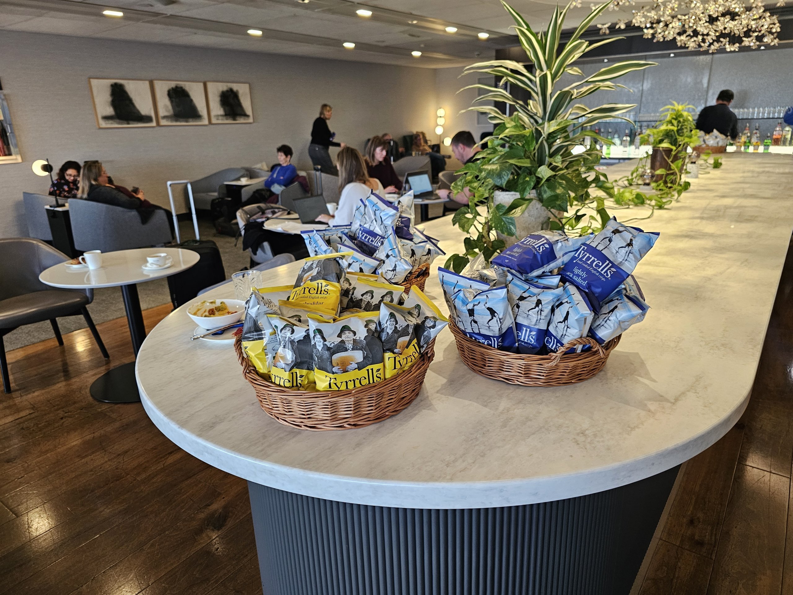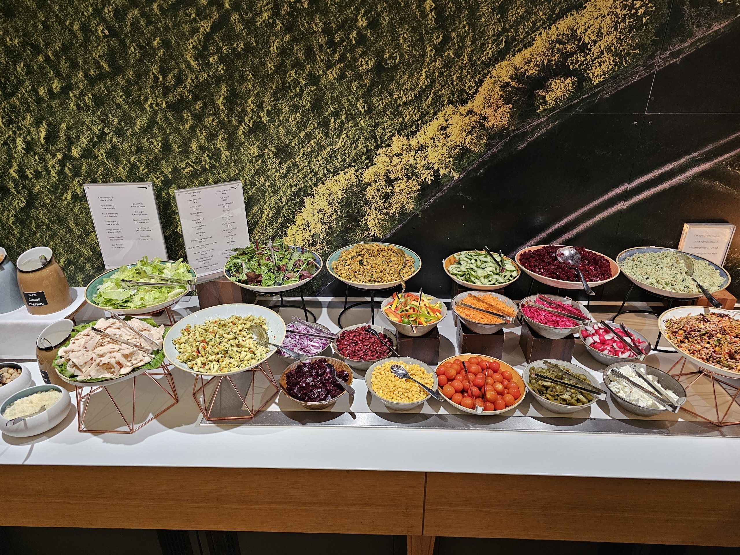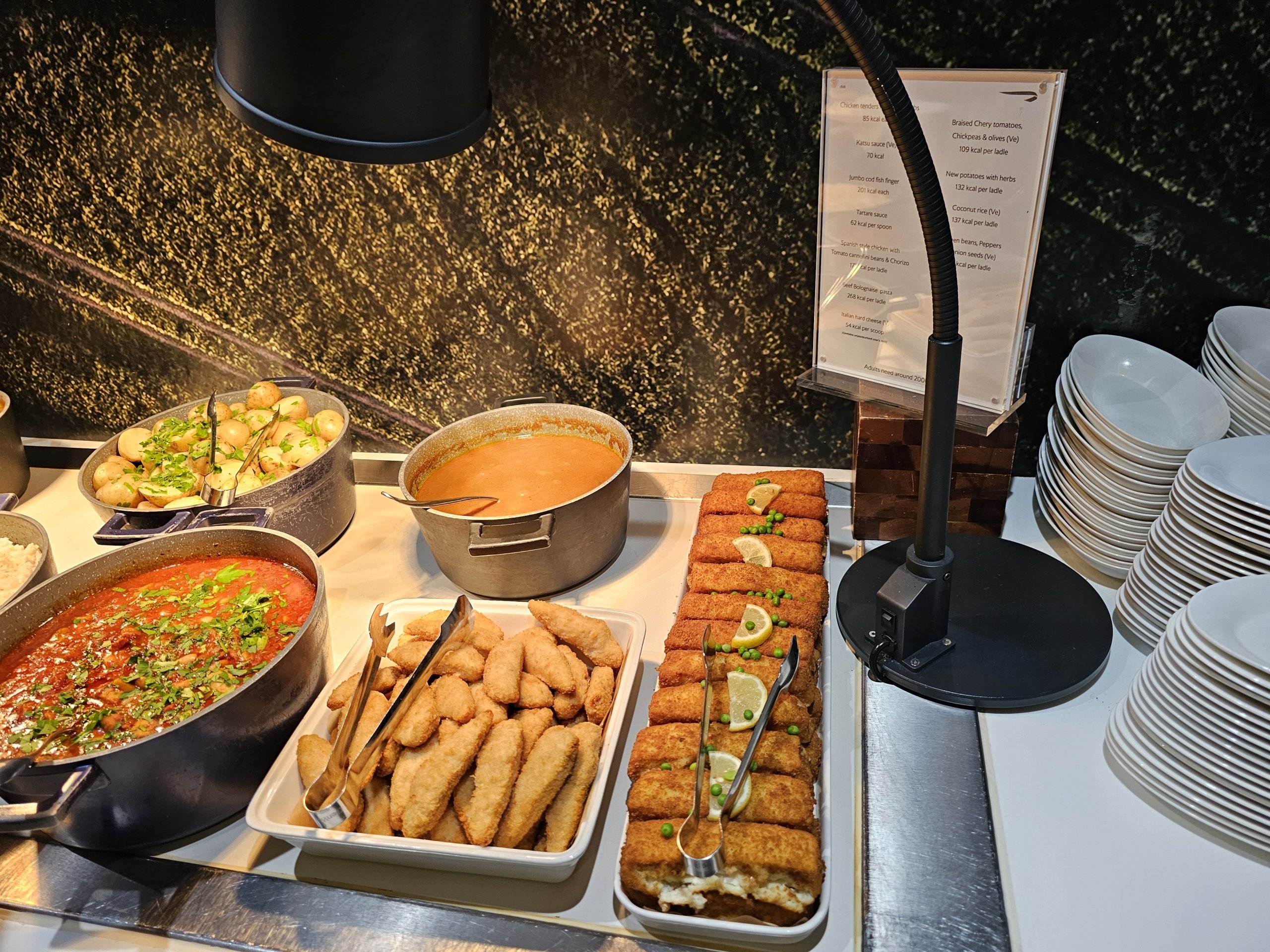 Το ζεστό φαγητό διαθέτει μενού πρωινού (μέχρι περίπου τις 11:30 π.μ.) και μενού μεσημεριανού γεύματος (μέχρι την ώρα κλεισίματος του lounge). Η σούπα είναι διαθέσιμη καθ' όλη τη διάρκεια της ημέρας.