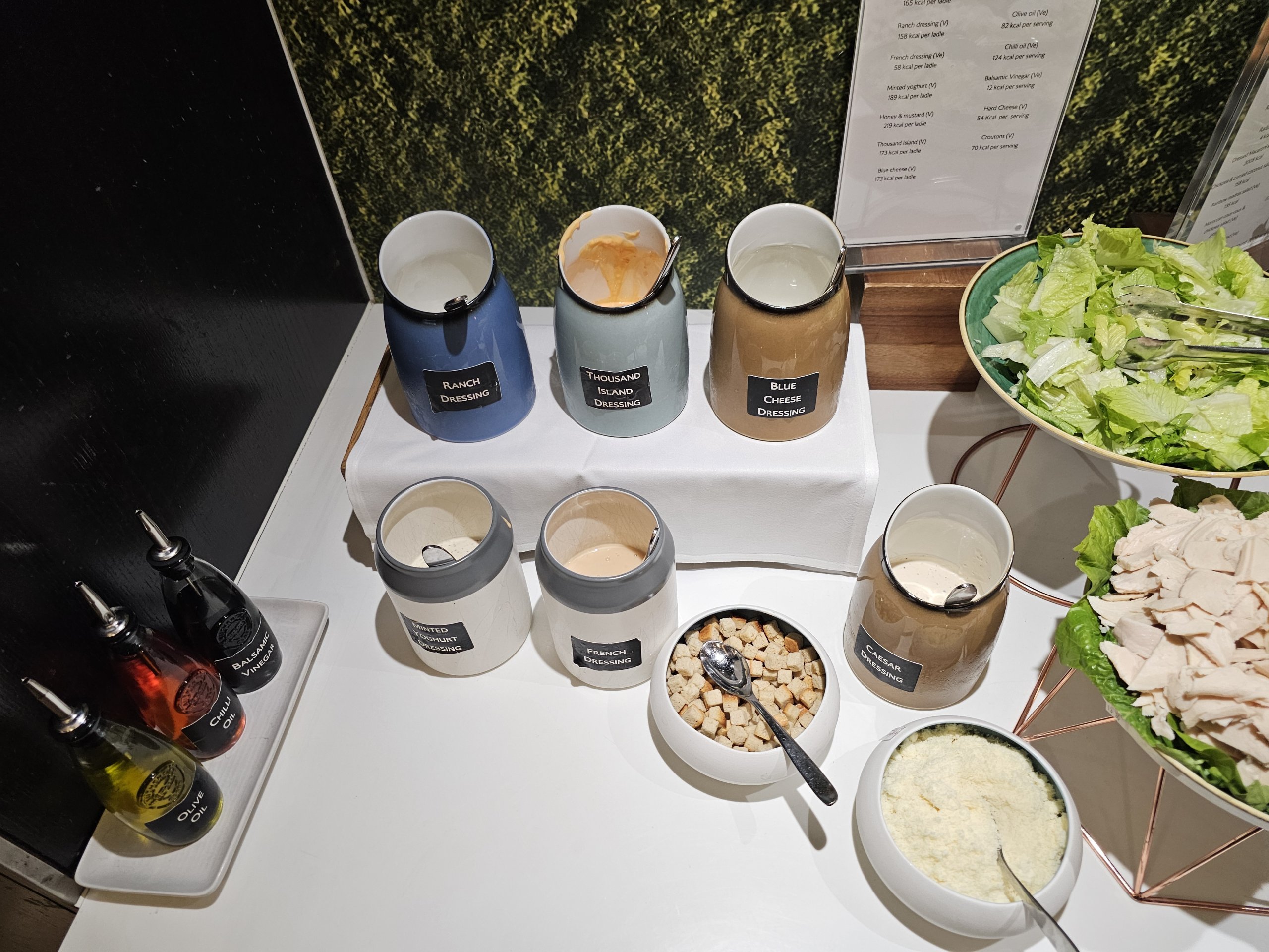 Το μενού των κρύων φαγη τών περιλαμβάνει λίγα λαχανικά, μια σαλάτα με επιλογή από διαφορετικά ντρέσινγκ και μια πολύ περιορισμένη και αδύναμη επιλογή γλυκών (πρακτικά μόνο γλυκά).