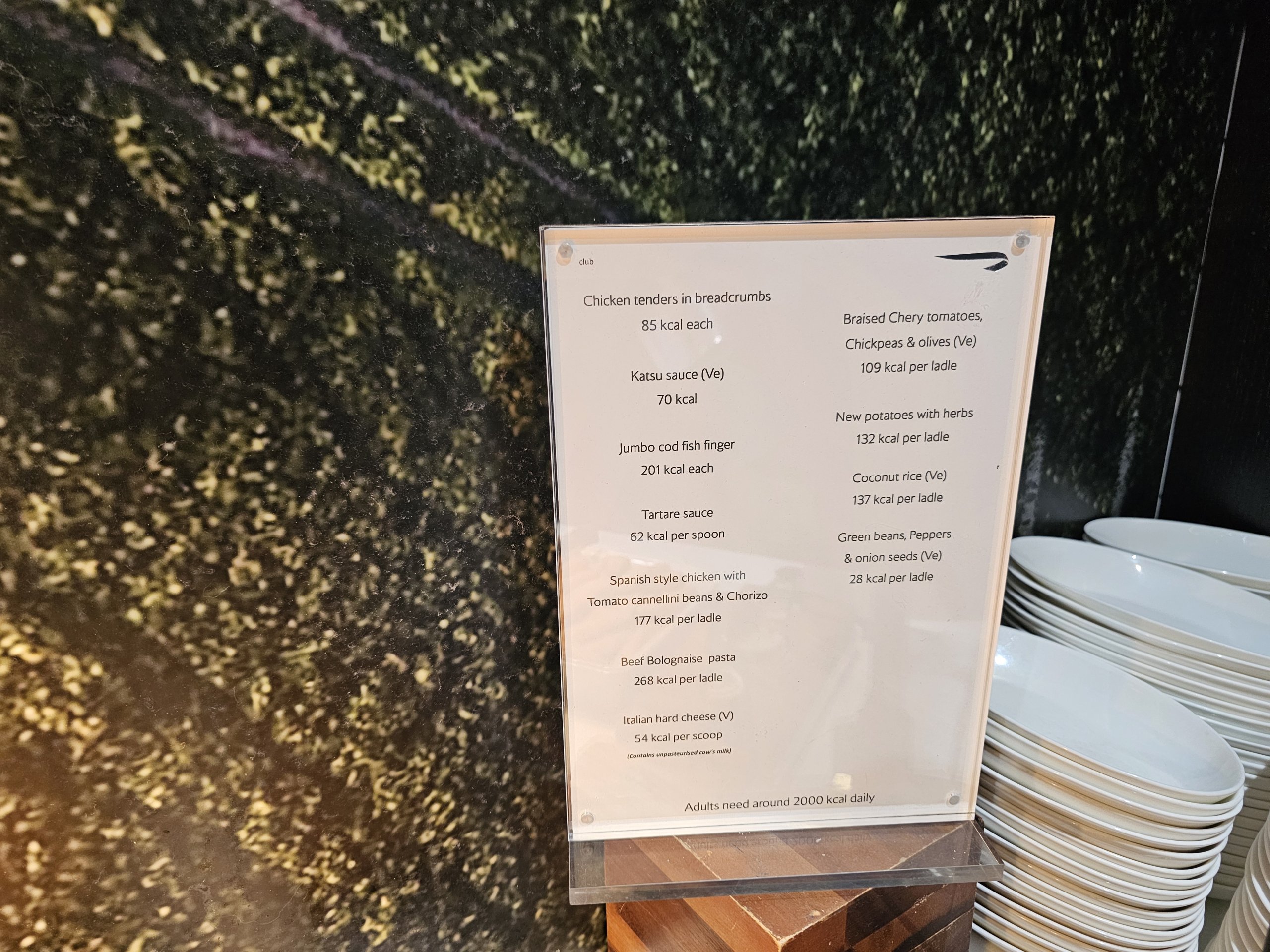 Στα θετικά, υπάρχει πινακίδα με την περιεκτικότητα σε θερμίδες όλων των προσφερόμενων φαγητών.